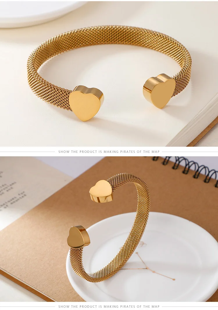 Браслет-манжета в форме сердца из нержавеющей стали, женские браслеты золотистого/серебристого/розового/золотого цвета, массивные вечерние браслеты, оптовая продажа Цвет: Золотой/Серебряный/розовое золото. Материал: нержавеющая сталь. Количество: 1 шт.