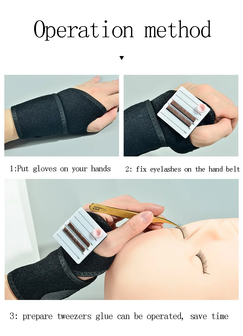 Название: мастер красивой реснички ручной ленты Материал: дышащий хлопок Спецификация: Ремешок на руку + накладки для ресниц Использование: при прививании ресниц удобно брать ресницы Толпа: магазин красоты, индивидуальный Характеристики: при прививке Прикрепите карту к липучке на запястье с помощью перчаточного ремешка, скорость прививки более чем немного быстрее.