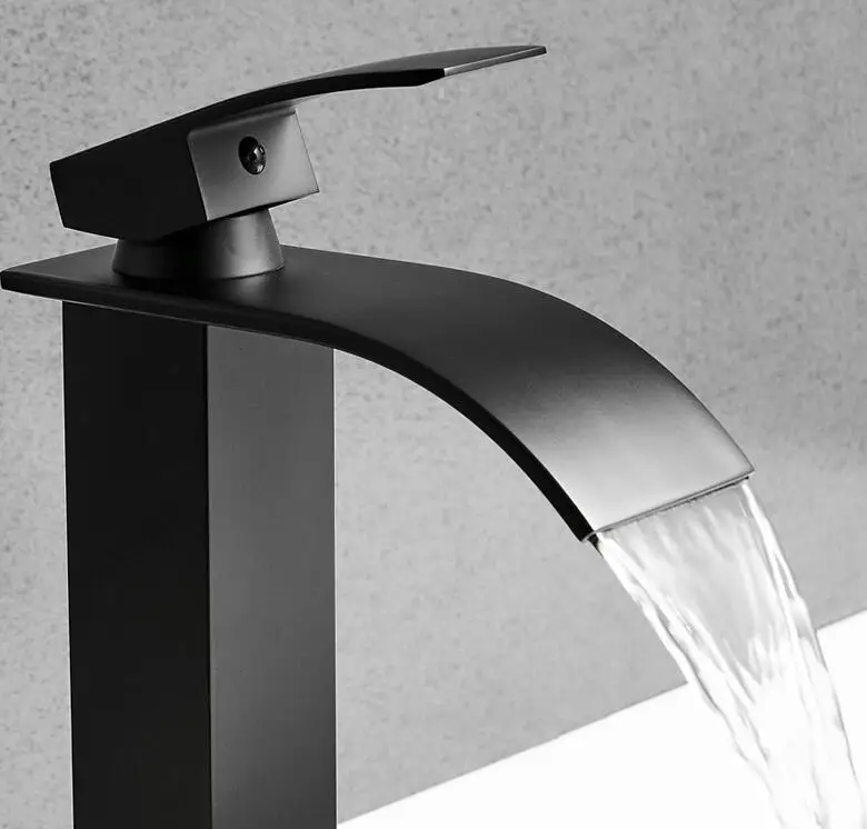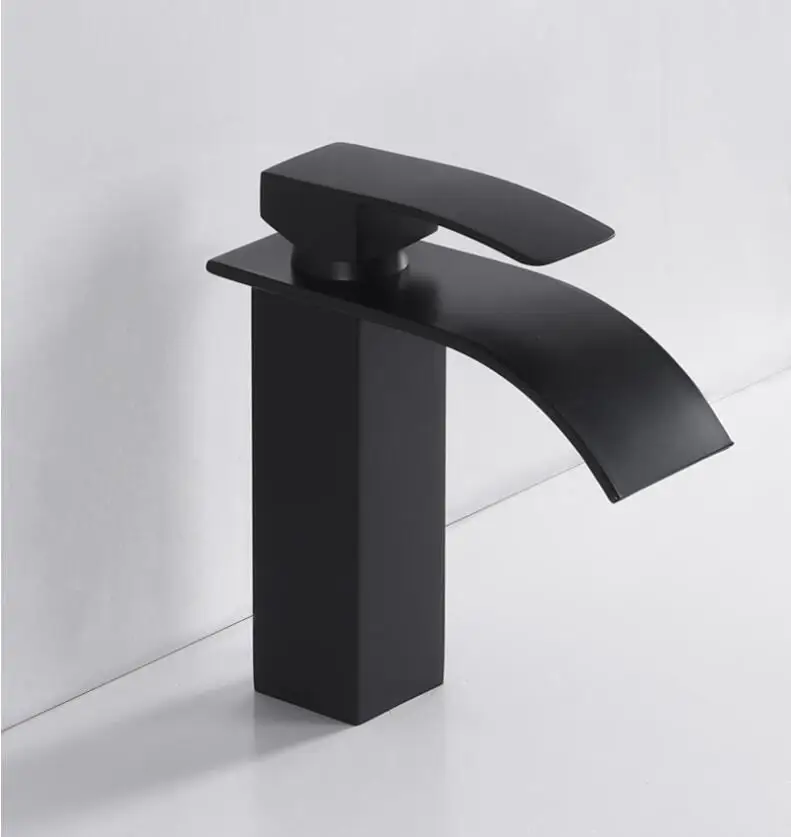 Золотая настенная раковинная смесительная кисть с матовым золотым водопадным краном горячей и холодной смеси в ванной комнате.