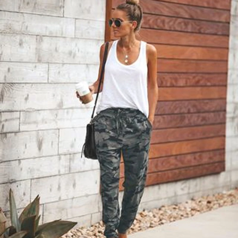 Камуфляжные уличные брюки карго женские повседневные джоггеры черные свободные