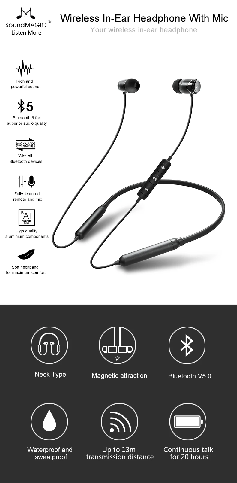 SoundMAGIC E11BT оснащен тем же настраиваемым драйвером, что и его проводное относительное устройство, которое способно принести зрелое звуковое изображение с гладкими высокими деталями и удовлетворить низкочастотное расширение. Так как E11BT использует Bluetooth V5.0 вместе с AAC совместимостью, он способен Беспроводная передача высококачественного звука с расширенным диапазоном передачи и длительным сроком службы батареи.
