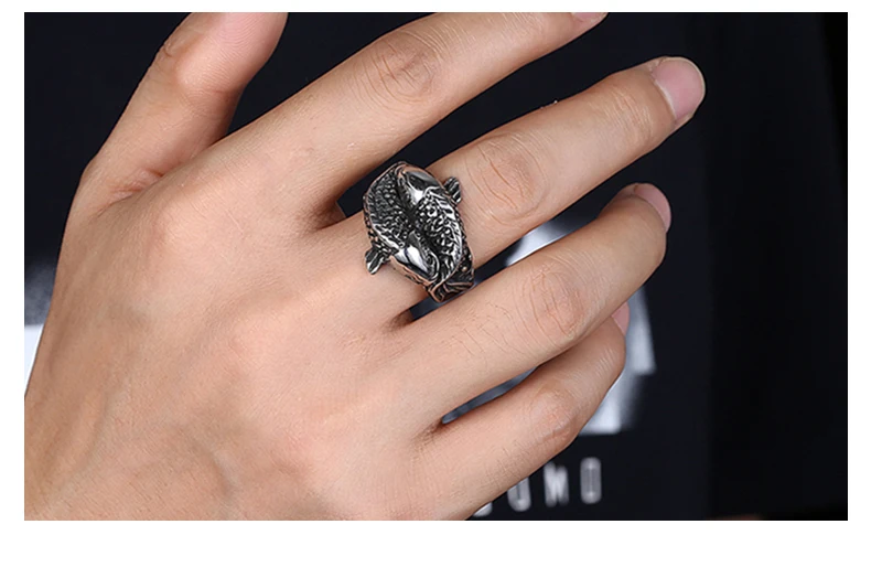 2020 Новое поступление 316L чистое титановое стальное кольцо в форме рыбы, Крутое мужское панк ювелирное изделие, рождественский подарок, размер 8-12, кольца для мужчин
