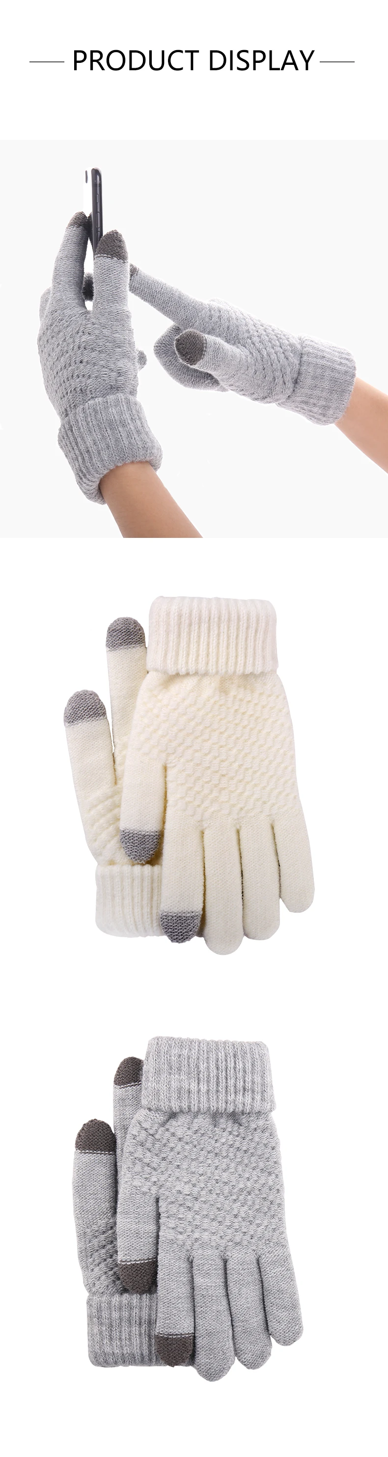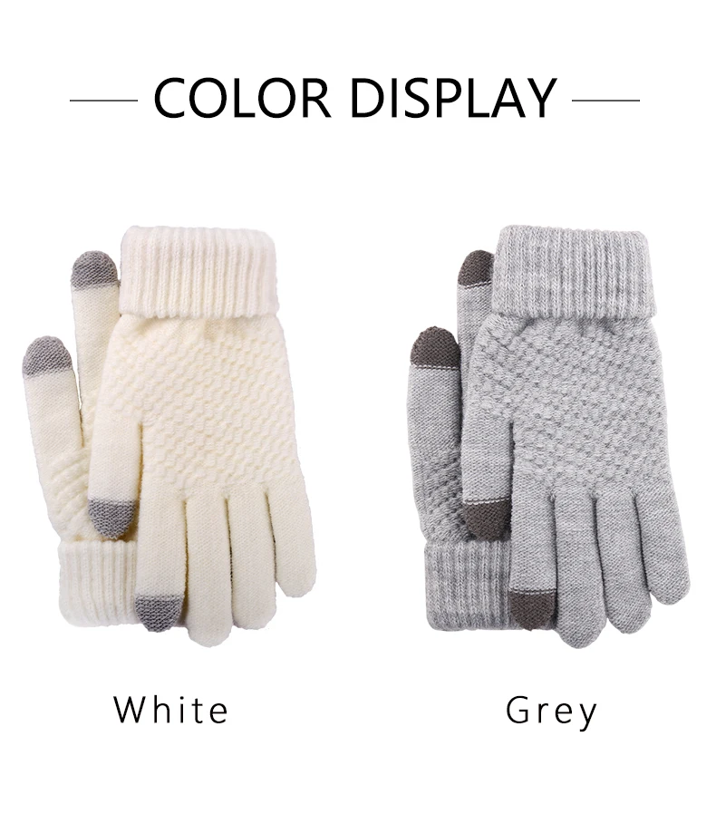 Товар: перчатки для сенсорного экрана Бренд: iwarm Материал: акрил Вес: 60 г Содержание упаковки: купальное полотенце, 1 пара Сезон: Осень-зима Цвет: серый, белый