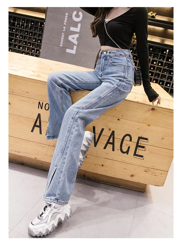 Женские джинсы MIND FEET с высокой талией женские эластичные повседневные свободные
