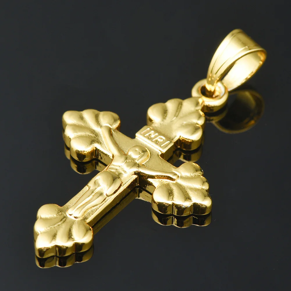 Цвет: золотистый Материал: сплав металла Позолоченный 14k изготовлен из высококачественного, красивого и прочного сплава. Крест можно обернуть вокруг шеи или носить с собой