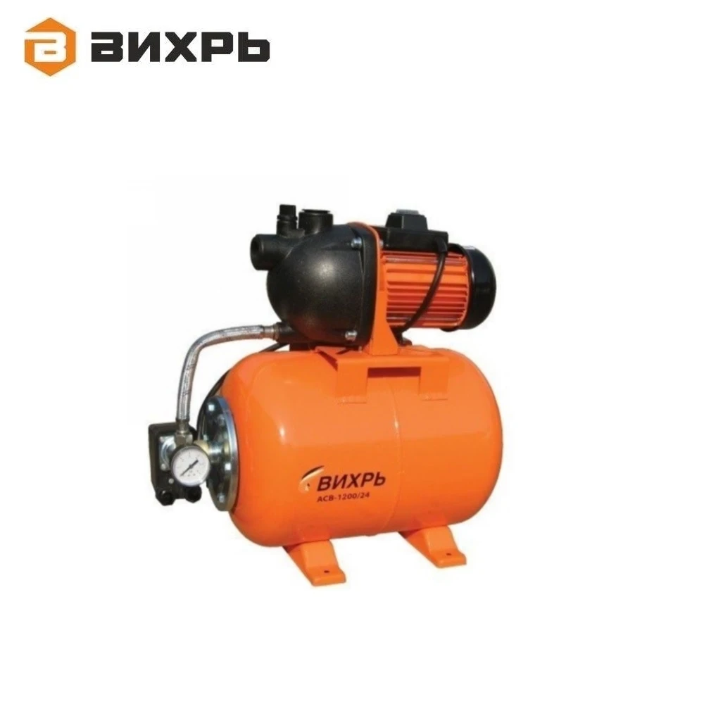 Насосная станция ВИХРЬ АСВ-1200/24предназначена для бесперебойного водоснабжения в автоматическом режиме, коттеджей, дач, ферм и других потребителей. Данная модель поддерживает необходимое давление в системе водоснабжения, самостоятельно включаясь и отключаясь по мере расходования воды потребителями. АСВ-1200/24 обладает достаточной мощностью 1200 Вт, максимальная глубина всасывания 9 метров, максимальная подача воды 70 литров в минуту, максимальный напор 40 метров. Емкость гидроаккумулятора составляет 24 литра.