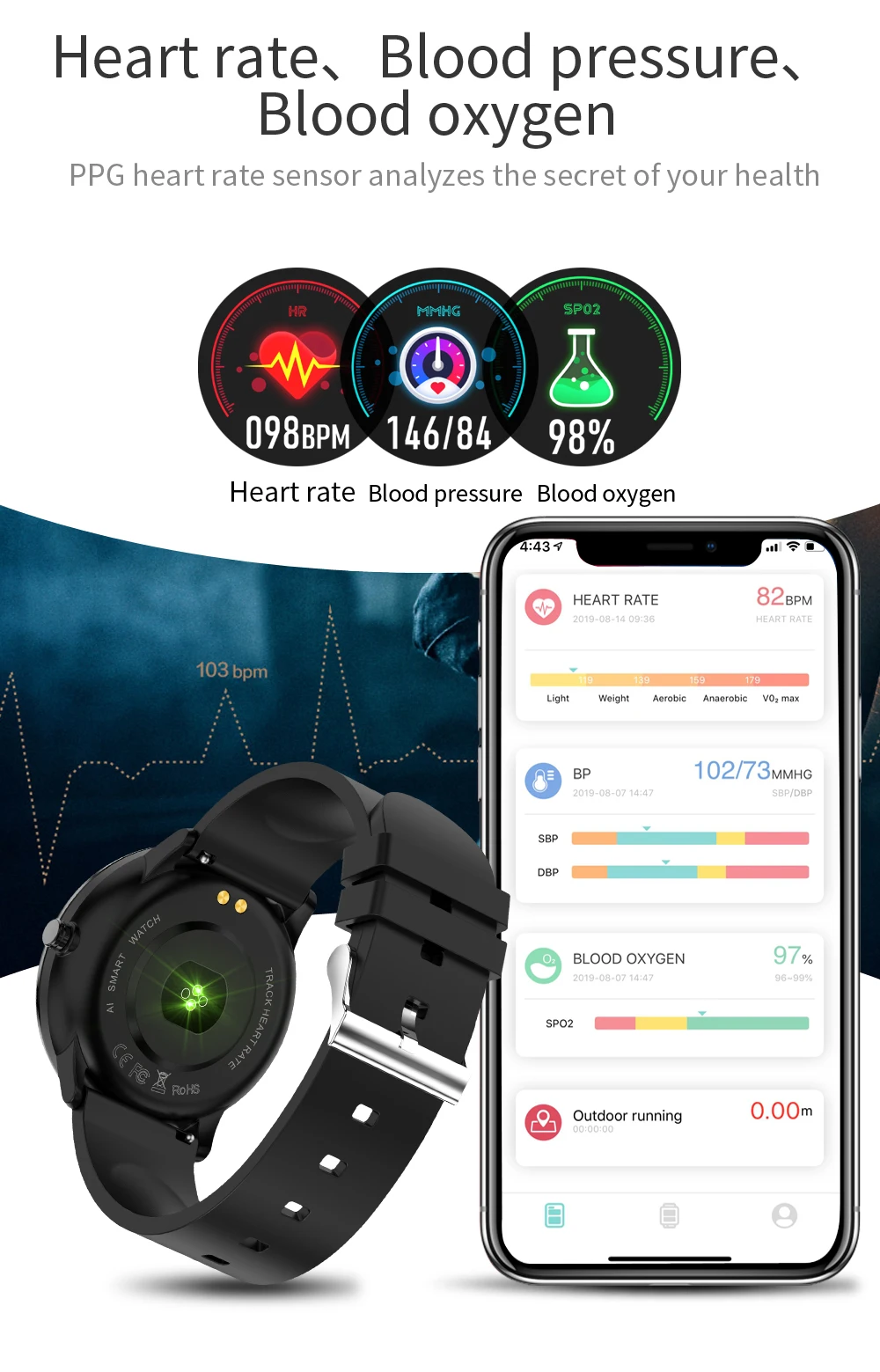 Новый монитор сердечного ритма ЭКГ Смарт-часы для мужчин и женщин, полный сенсорный Экран IP68 Водонепроницаемый 2020 Смарт-часы Спорт Фитнес часы наручные часы
