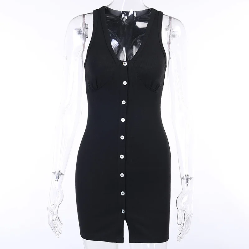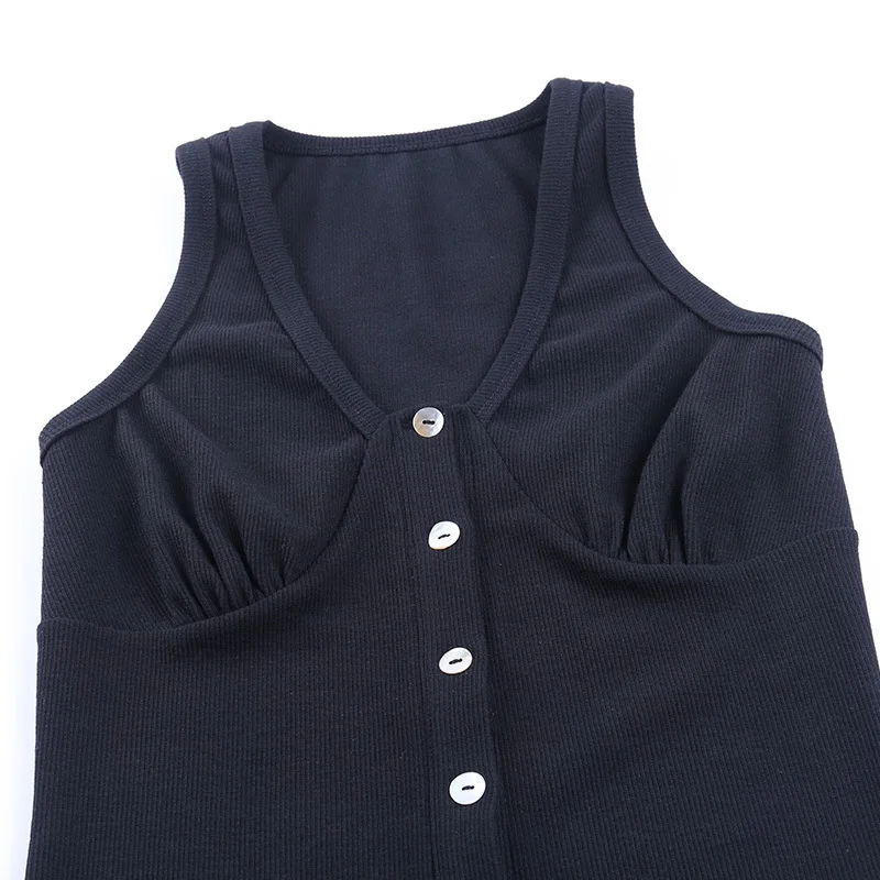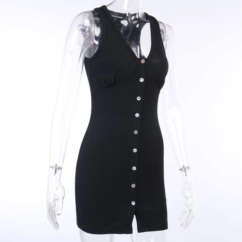 2020 Европейское и американское Новое тонкое платье женское темпераментное и Элегантное трикотажное платье без рукавов с пуговицами