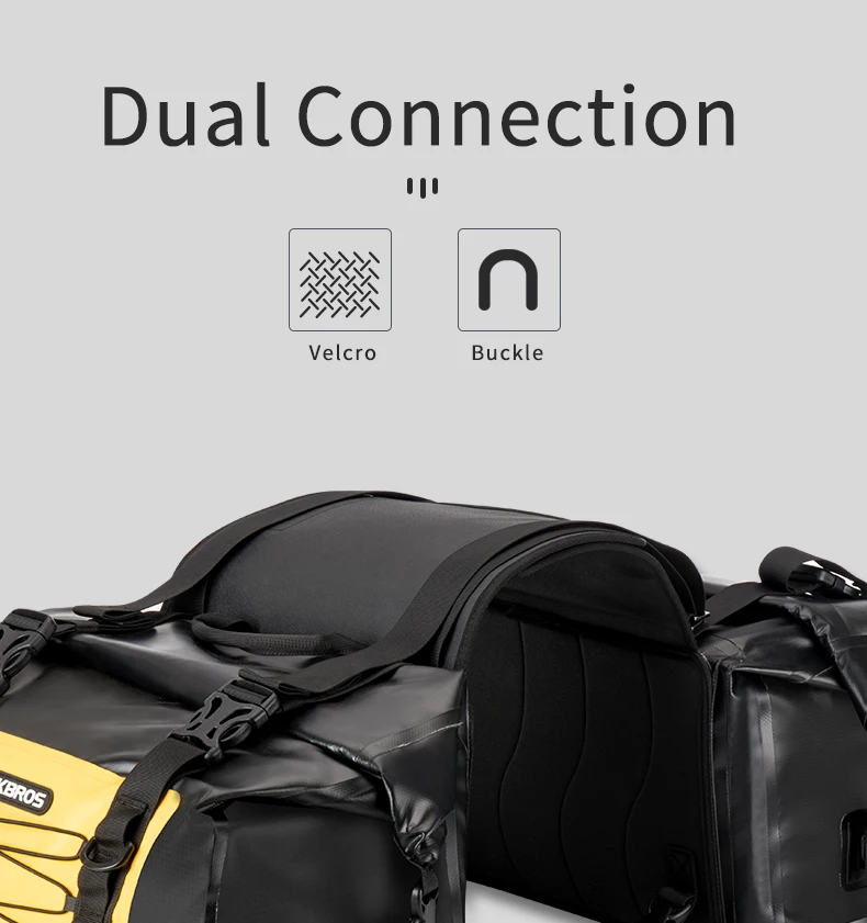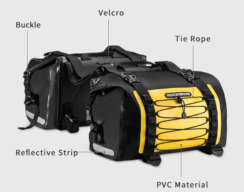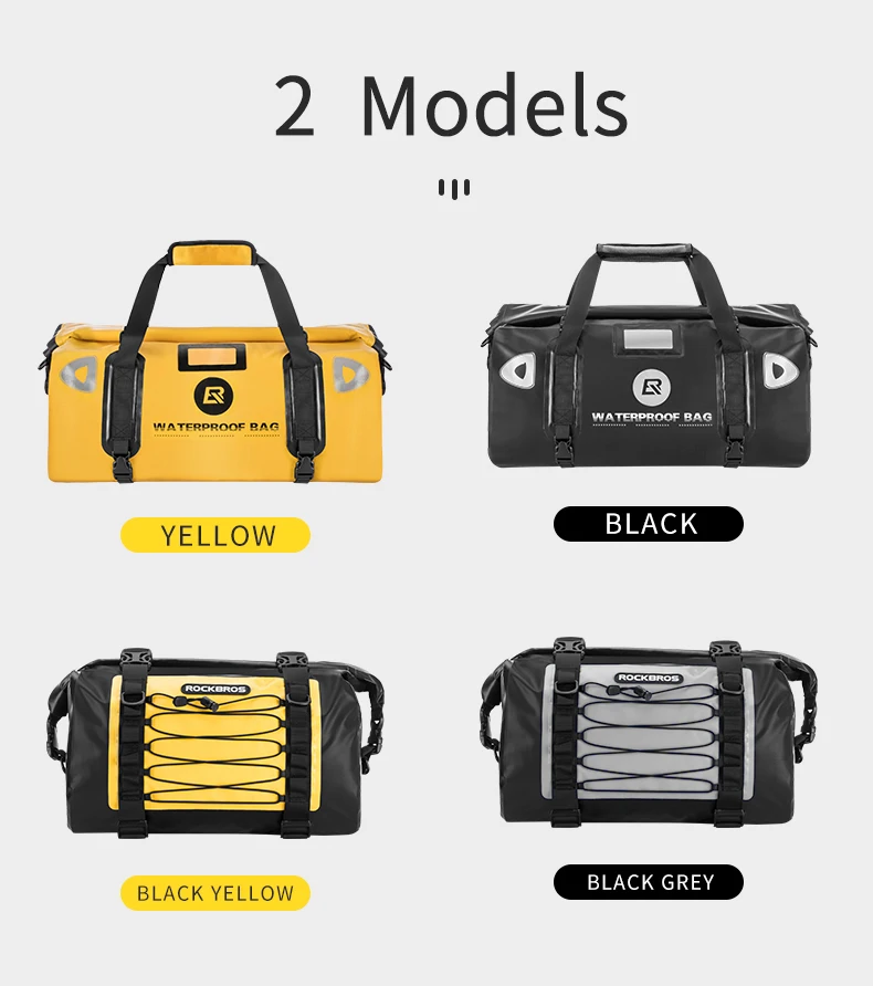 Product Detail Brand:ROCKBROS Name:Gym Bag/Bike Rear Bag Color:Black/Yellow/Grey Capacity:About 55-62 L Bear: About 50-60 KG Material:PVC Material Fit:Cycling/Gym/Picnic Use:Unisex Product Feature 1.Seamless,Waterproof,can use for Multiple weather 2.Big Capacity,Easy storage 3.Reflective strip design,Safety in night 4.Multiple carrying methods to meet various needs 5.Side mesh pockets,Separate storage 6.Combination connection for stronger 7.More Detail(Name Card holder and Air Release valve) 8.Two Models can be chose,Buy in any combination Product Description