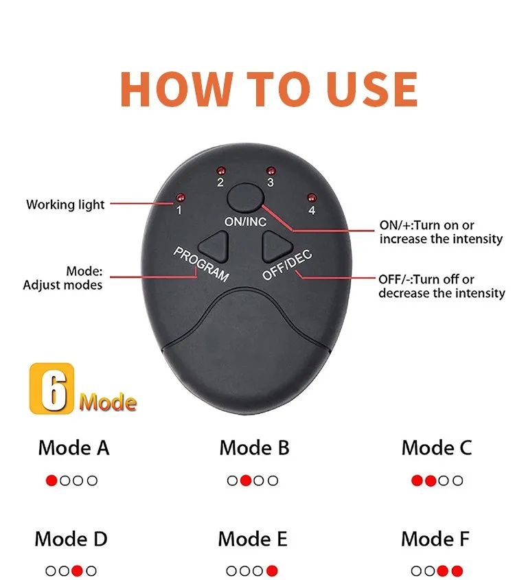 Новейшая технология EMS через ток непосредственно посылает сигнал мышцам и способствует мышечному движению. Все, что вам нужно сделать, это приспосабливать прокладки к вашему телу и позволить им тренировать мышцы.
