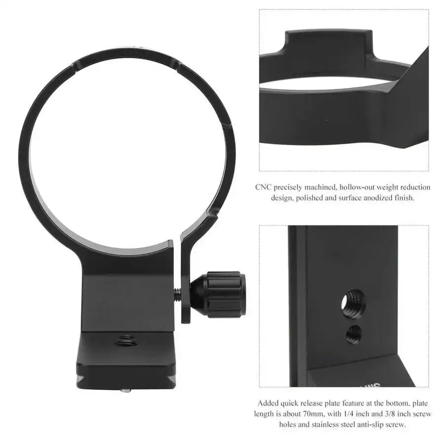 Тип изделия: крепление штатива для объективаСостояние на 100% абсолютно новыйМатериал: алюминиевый сплавВес: прибл. 283 гЦвет: черныйВнутренний диаметр: прибл. 82 мм/3.2inШирина: около 18 мм/0,7 дюймаДлина быстроразъемной пластины: прибл. 70 мм/2.8inПосылка список: