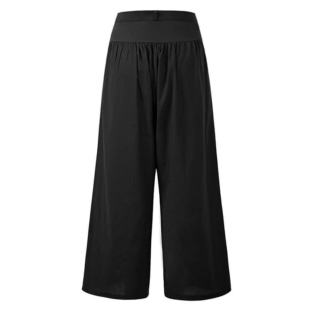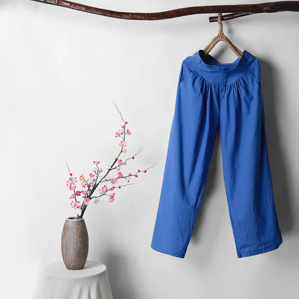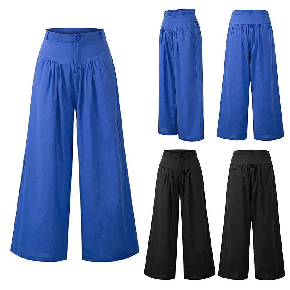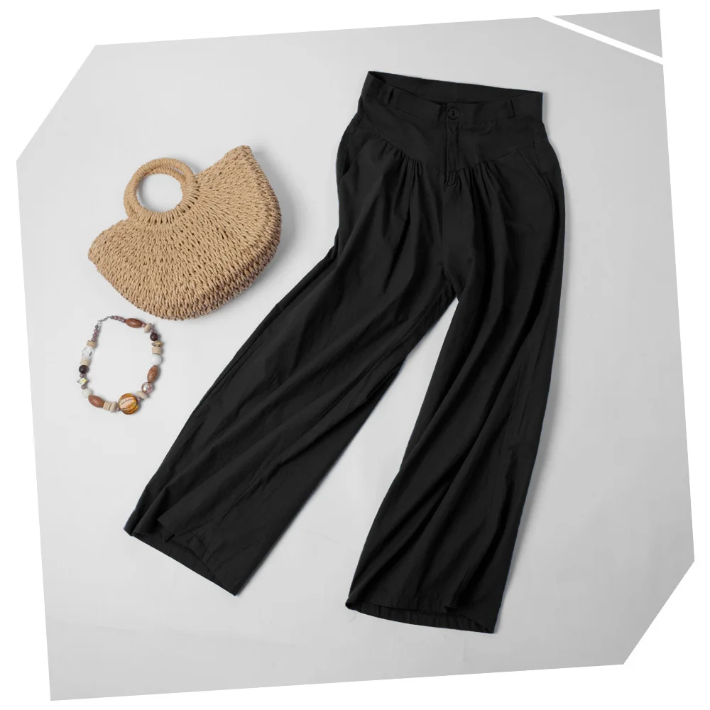 Широкие брюки однотонного цвета прекрасно формируют ваши ноги и делают их более стройными. Закрытые пуговицами и молнией, есть два кармана для хранения ваших маленьких вещей.