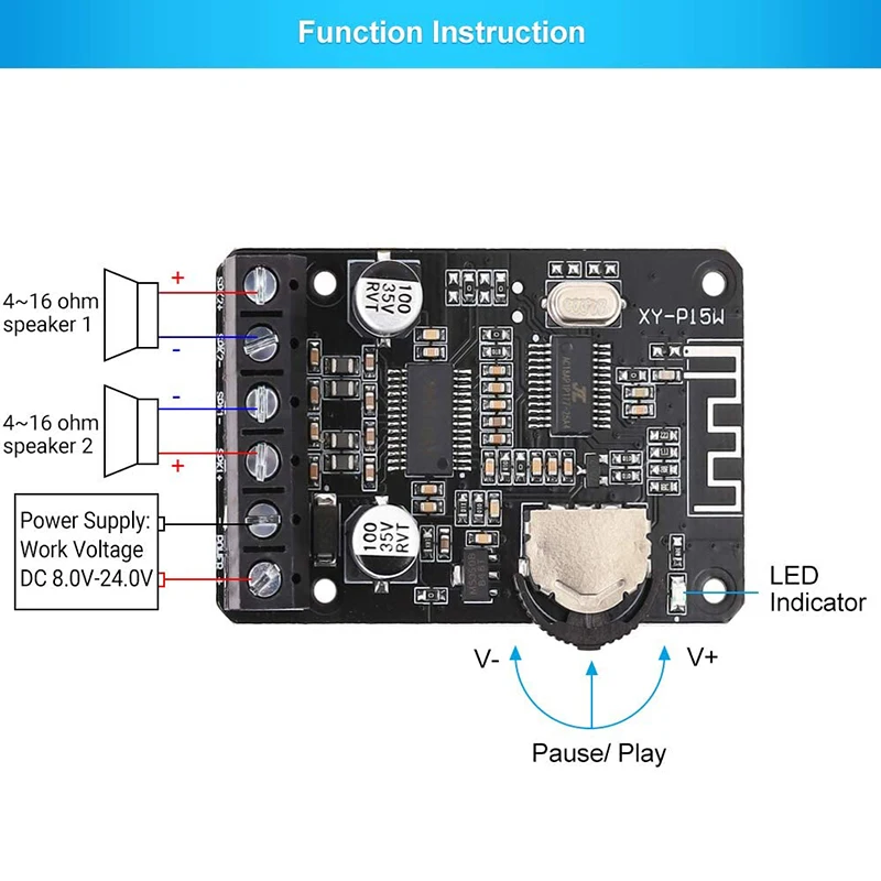 Комплексная защитная функция: Этот модуль усилителя bluetooth o поставляется с защитной оболочкой, значительно защищает устройства от daed, поддерживает защиту обратного соединения, защиту от короткого замыкания и самовосстанавливающуюся защиту от перегрева.