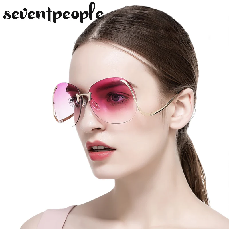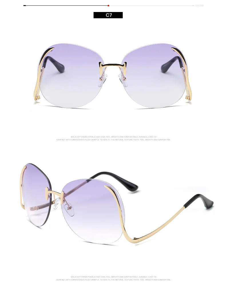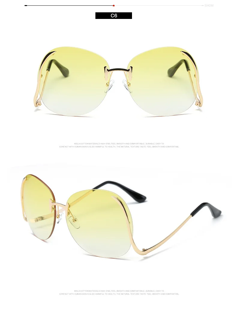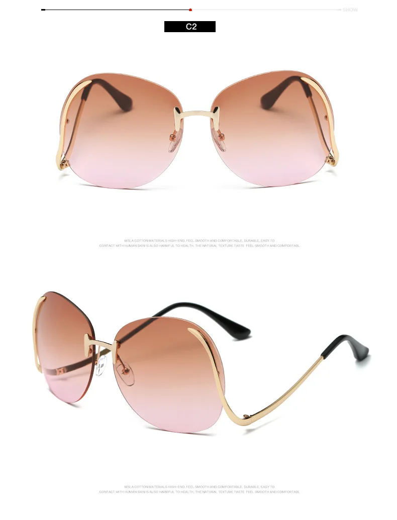 2020 негабаритные Круглые Солнцезащитные очки без оправы для женщин, роскошные брендовые дизайнерские модные градиентные затемненные солнцезащитные очки для мужчин с защитой UV400