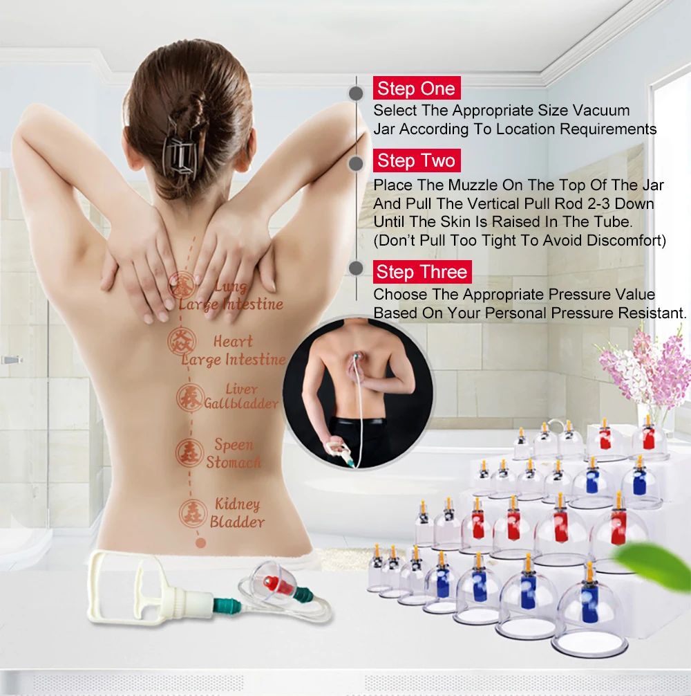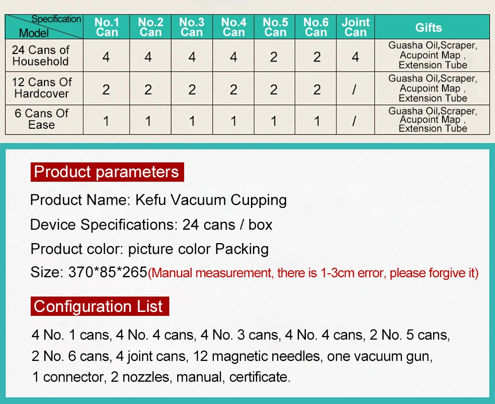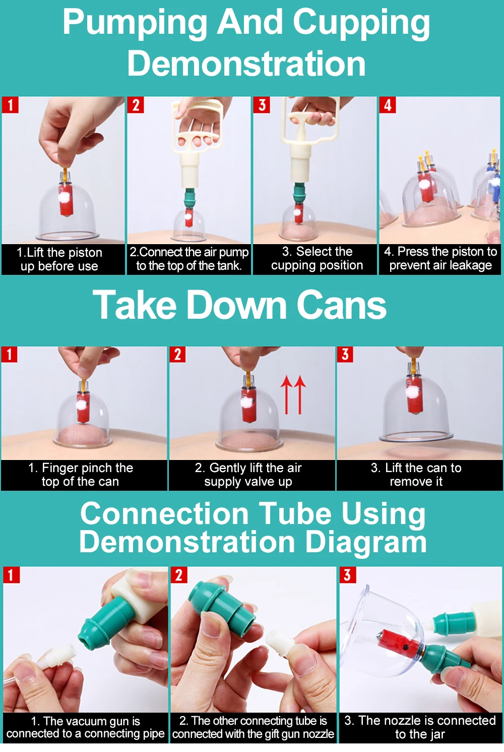 1 х всасывающий насос 24 чашки для терапии 1 x доска гуаша 12 х Магнит 1 х Расширенная трубка