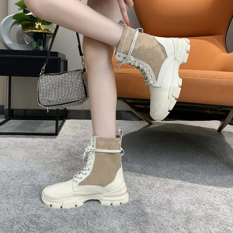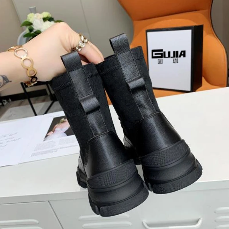 Брендовые сапоги на танкетке женские из микрофибры с каменной текстурой осенне