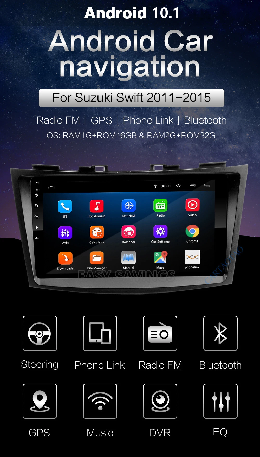 Android 10.1 Car Multimedia Player for Suzuki Swift 2011 2012 2013 2014 2015 Car Radio GPS Navigation WiFi Player 2din no DVD BT WIFI