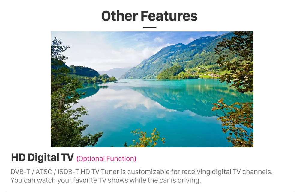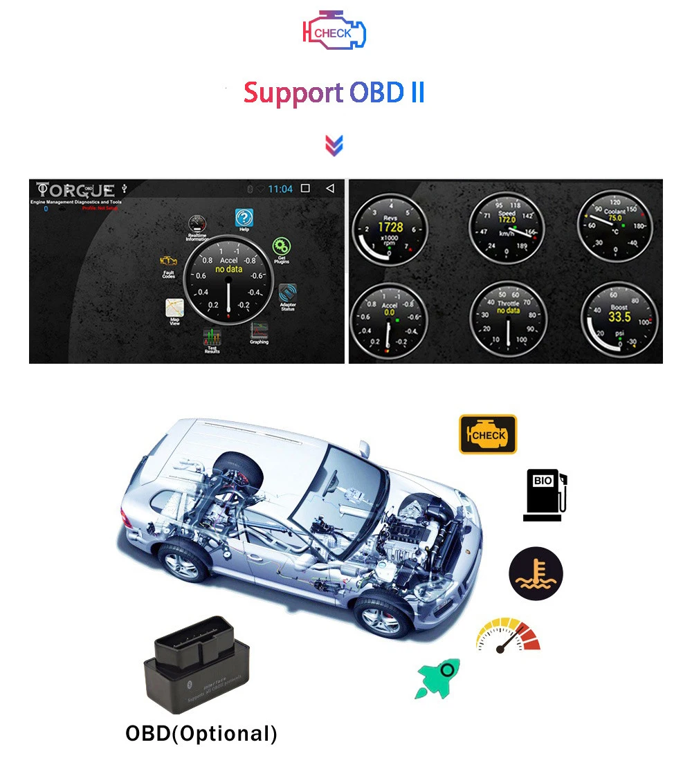 15)Support OBDII / TPMS / DVR / TV Tuner (Accessories Optional)