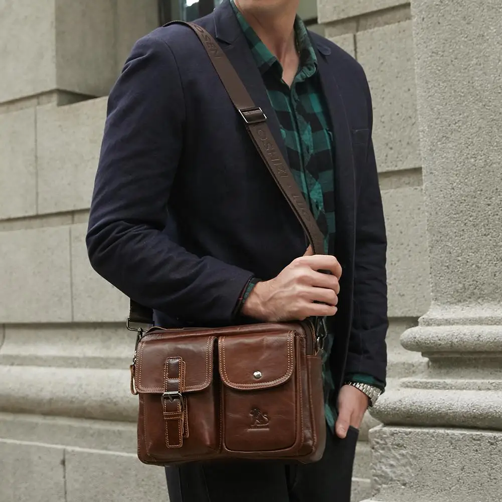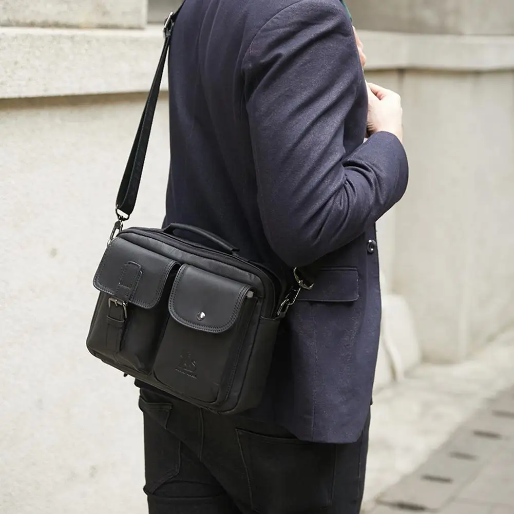 ![]() Мужская большая сумка-мессенджер из искусственной кожи, деловая сумка через плечо с несколькими карманами из натуральной кожи, вместительные сумки через плечо