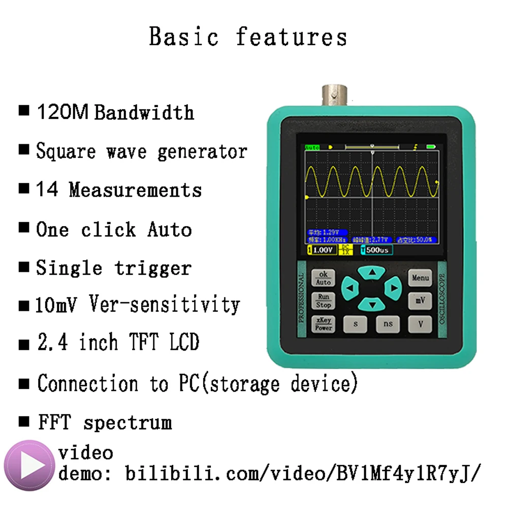 Это своего рода качественный осциллограф, ARM + FPGA + ADC architecture, с пропускной способностью 120 м и частотой дискретизации 500 м, более стабильный и с более высокими значениями. Широкое применение на mcu отладки, ремонт автомобилей, Ремонт бытовой техники, DIY электронных соревнований, отладки питания, инвертор и т. Д. Вы можете попробовать.