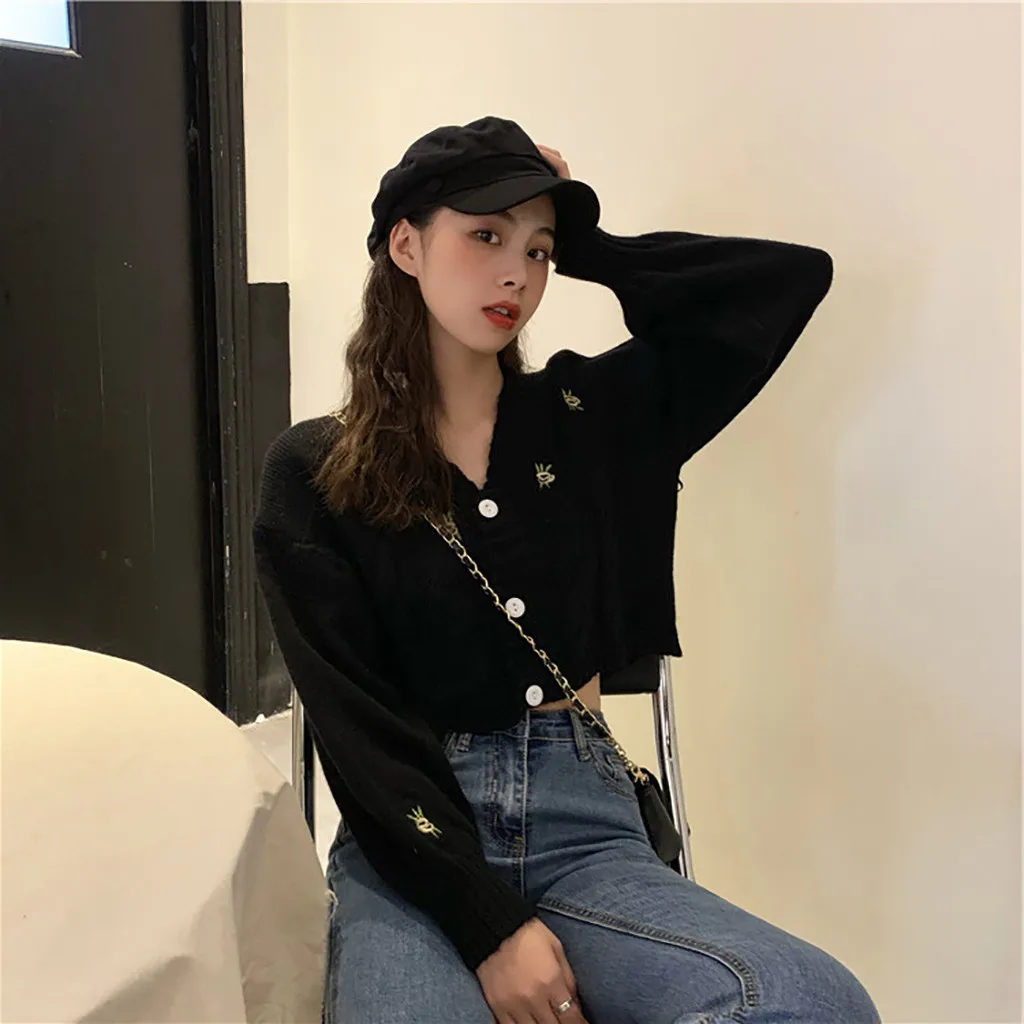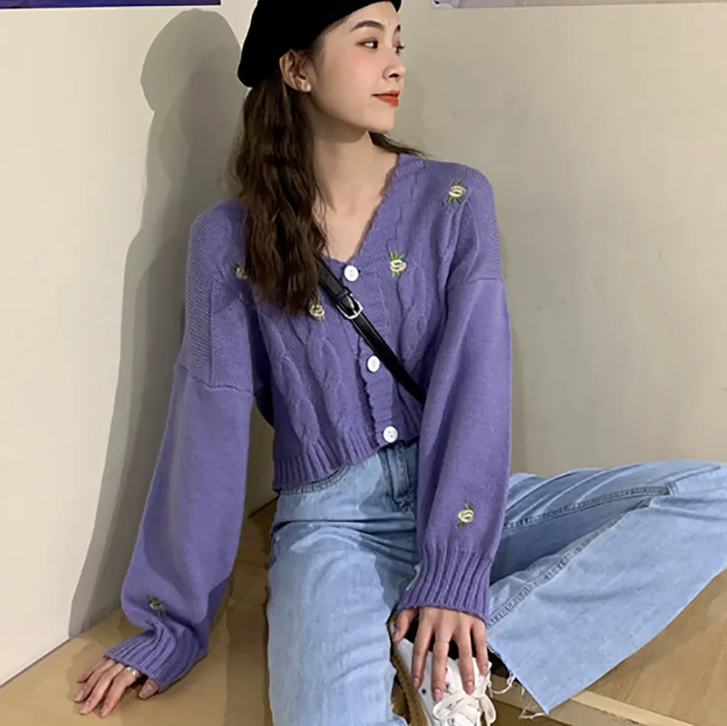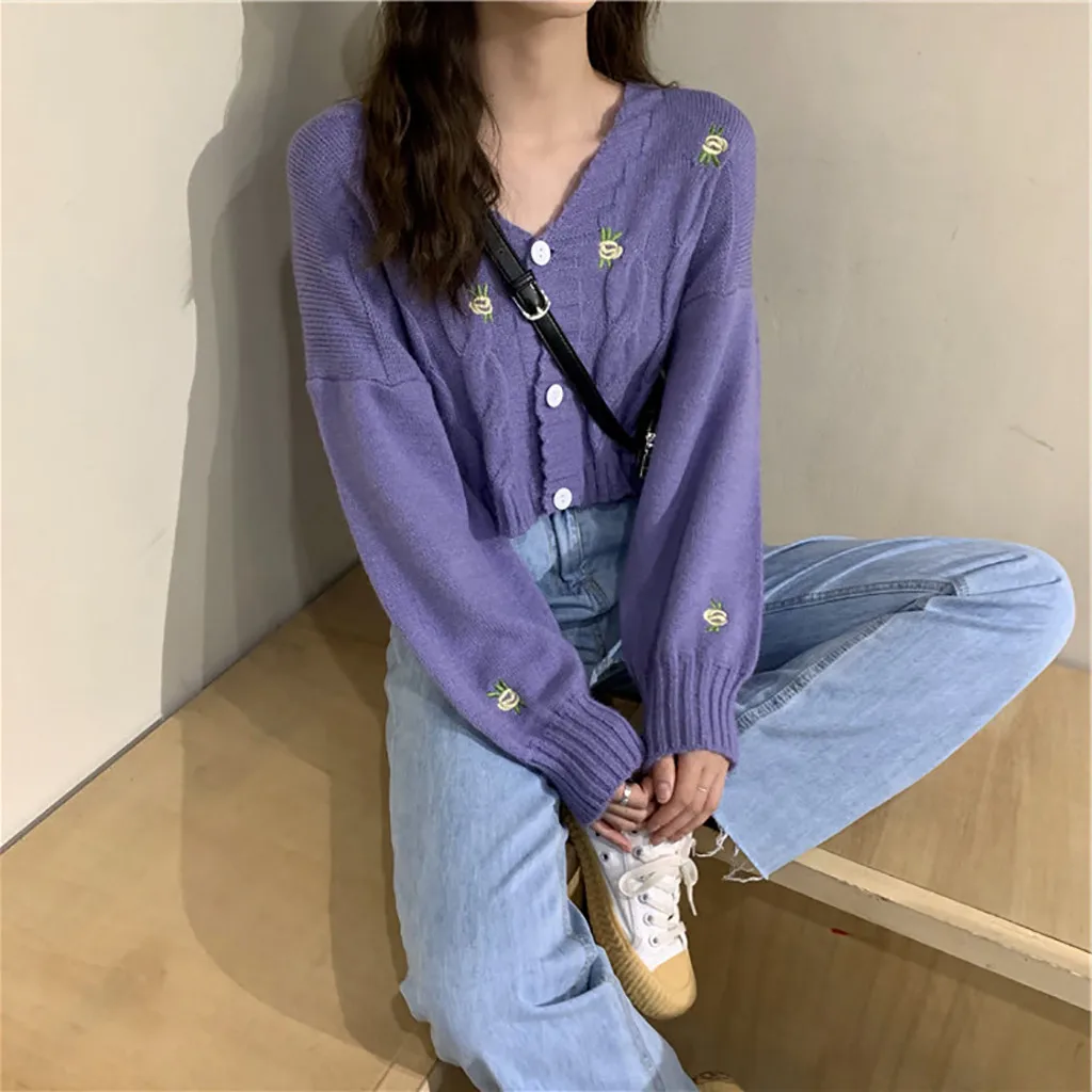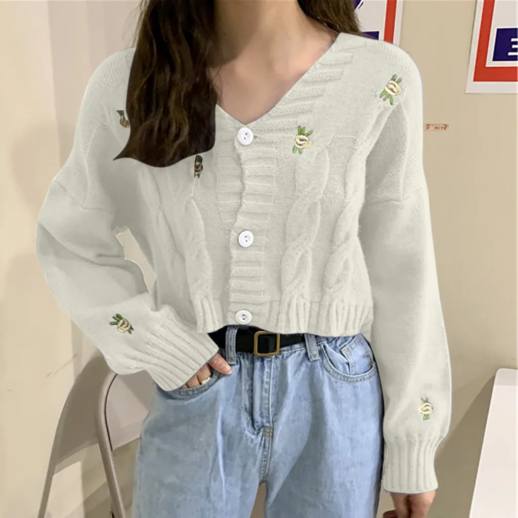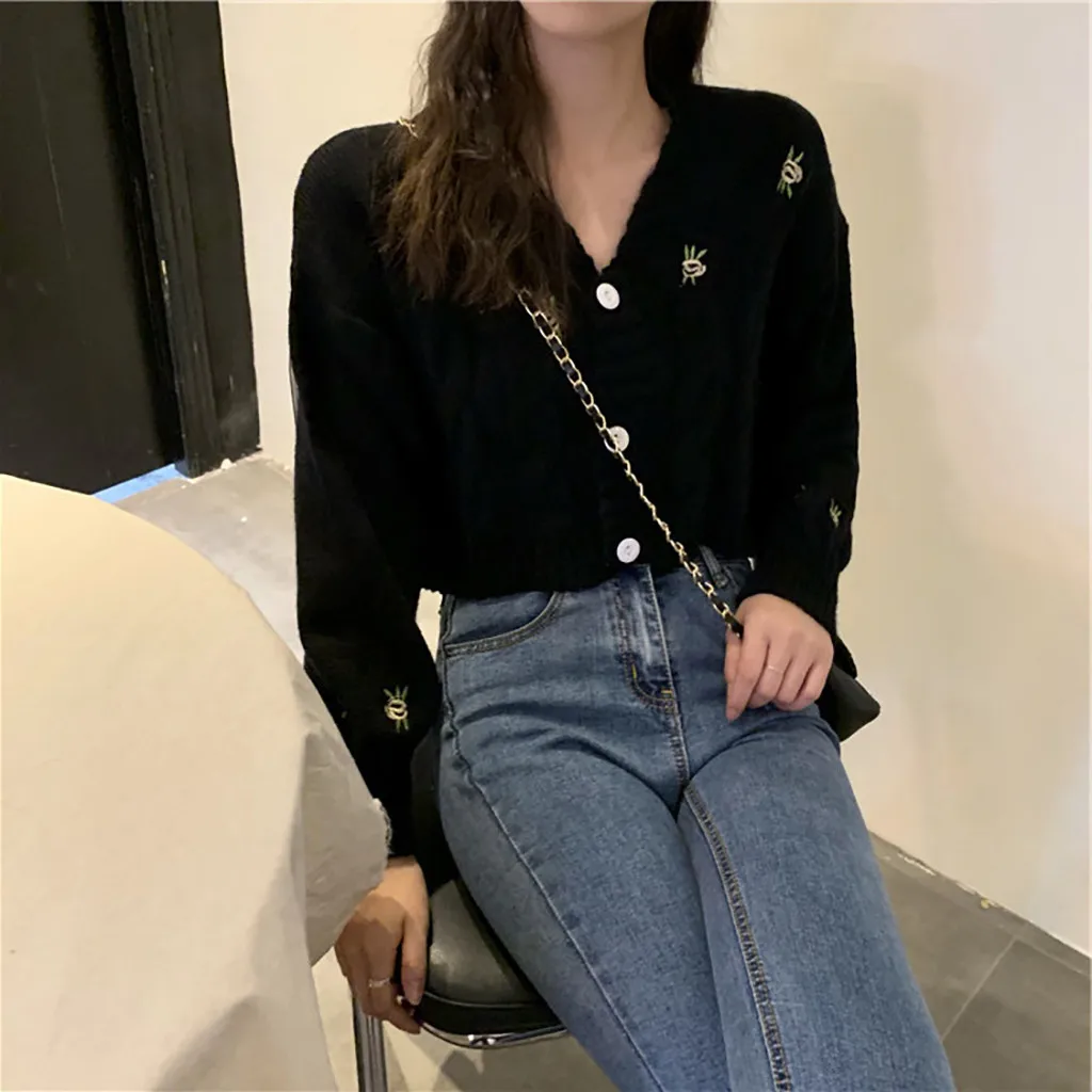 Женский свитер с вышивкой, осенне-зимний вязаный Свободный Повседневный Топ