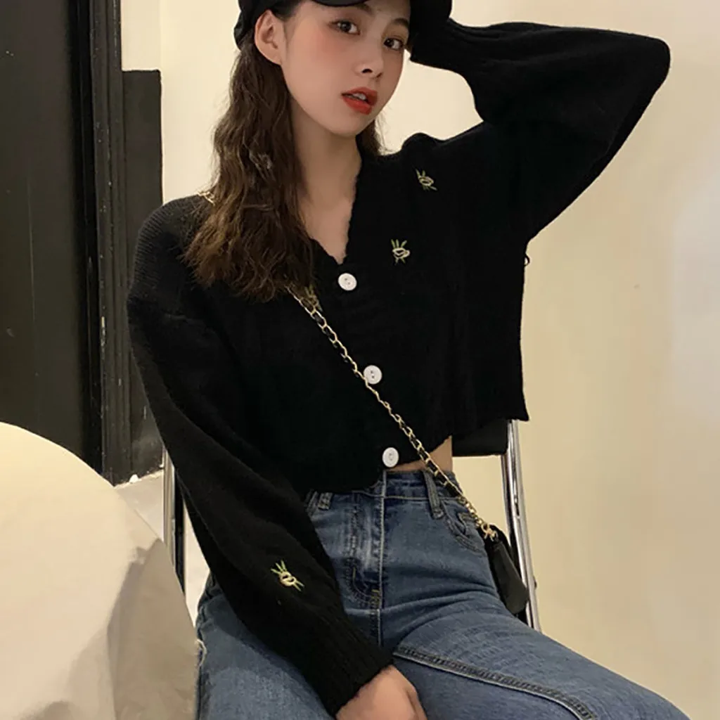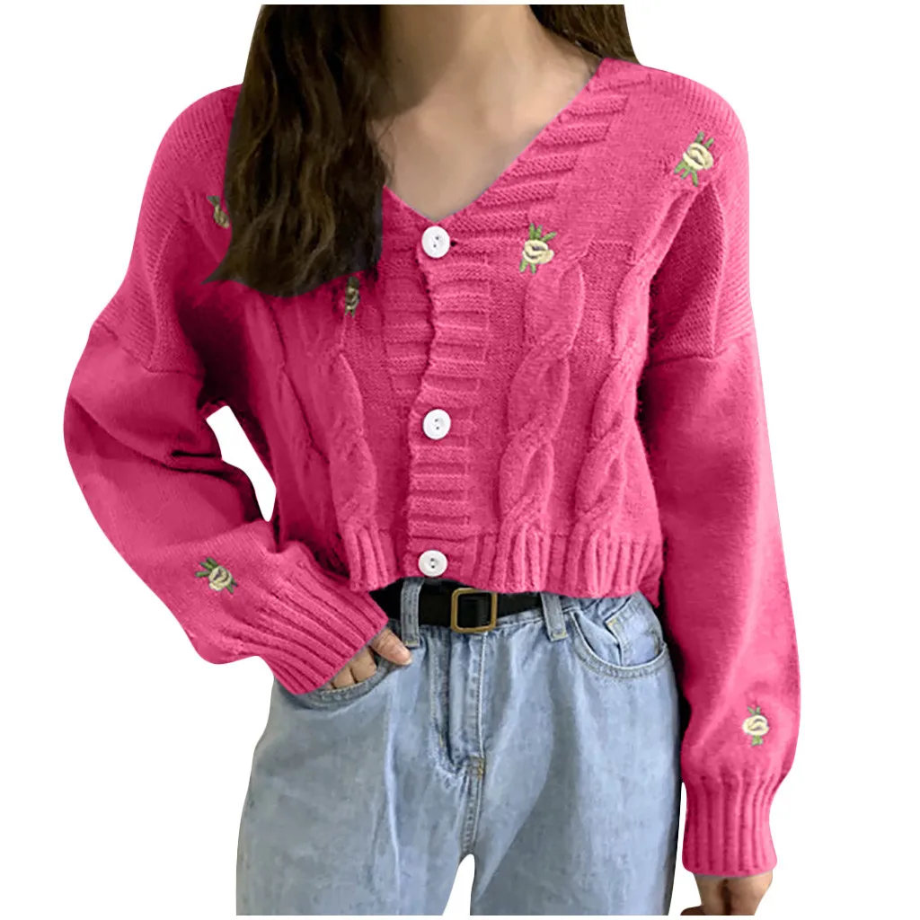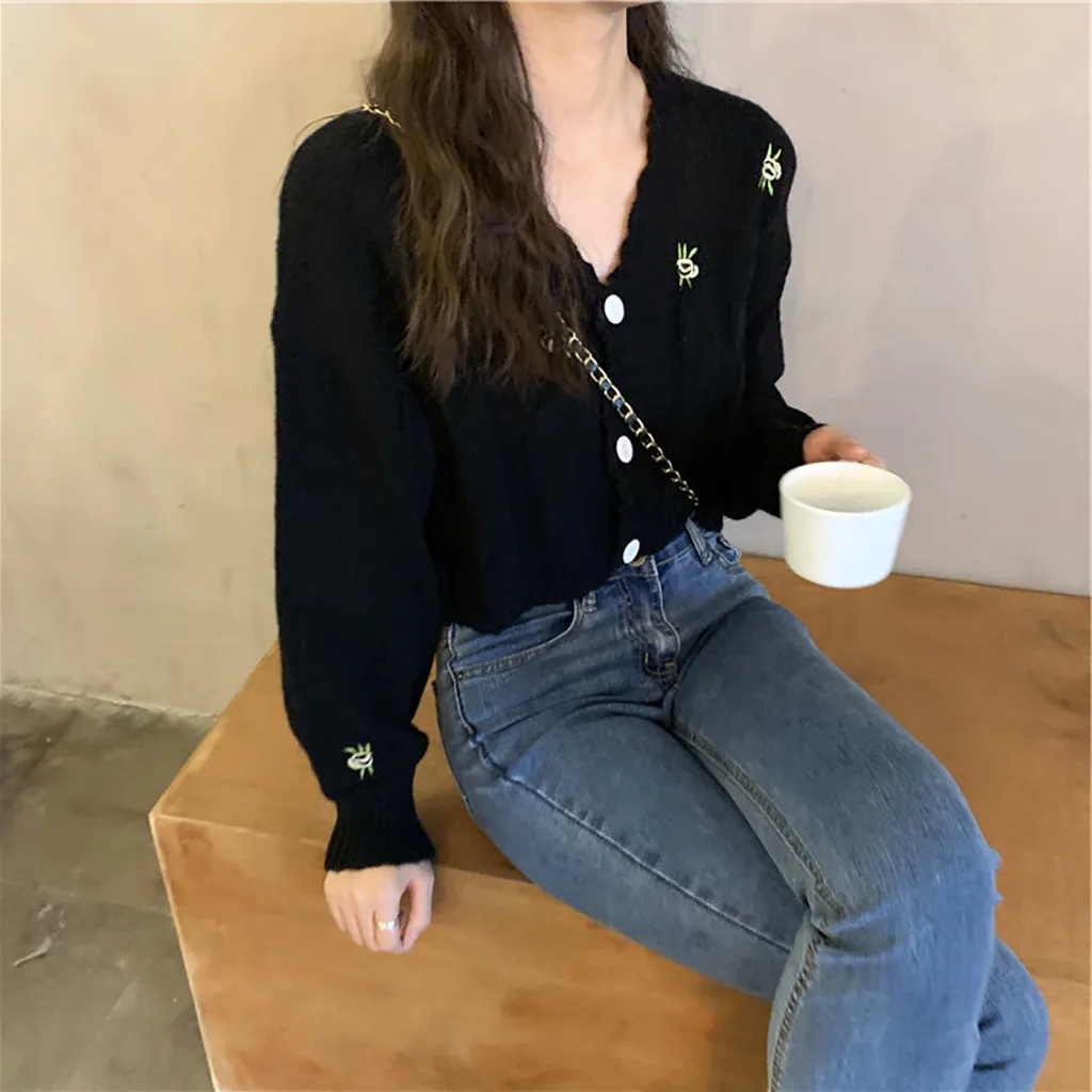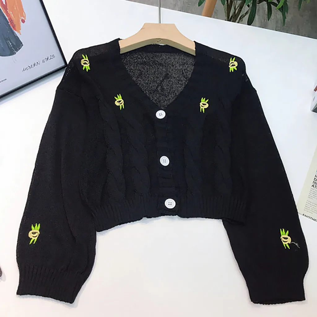 Женский свитер с вышивкой, осенне-зимний вязаный Свободный Повседневный Топ