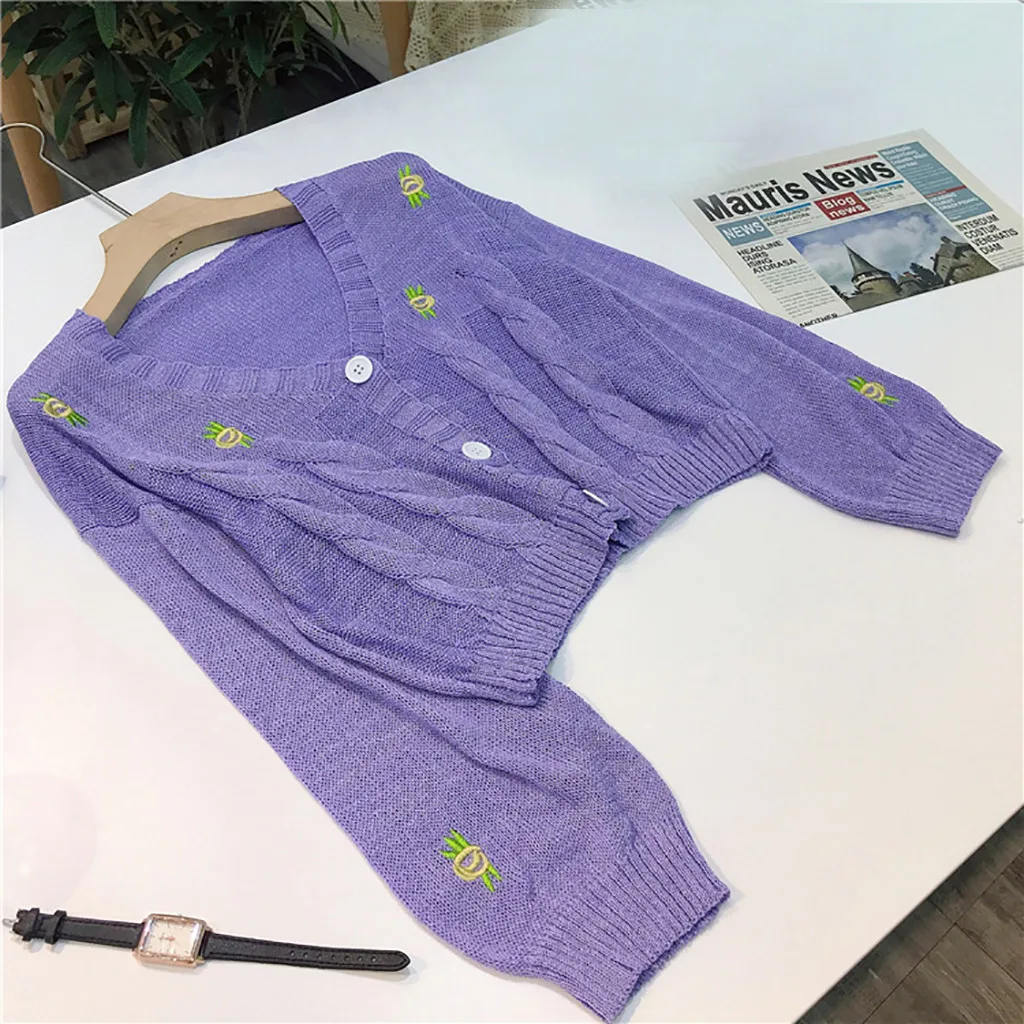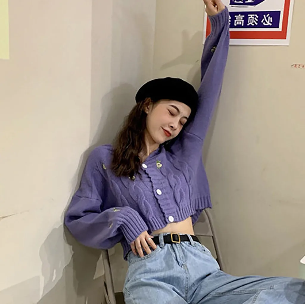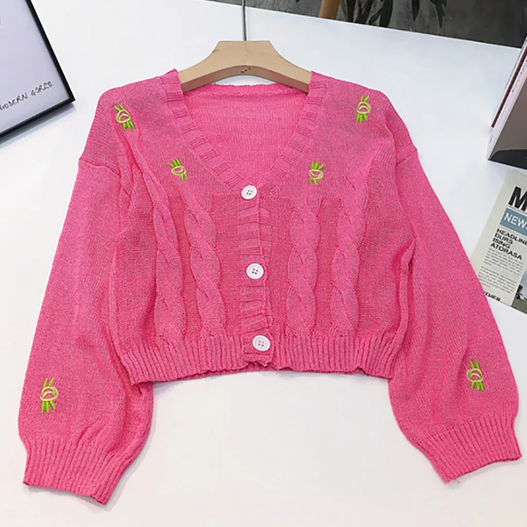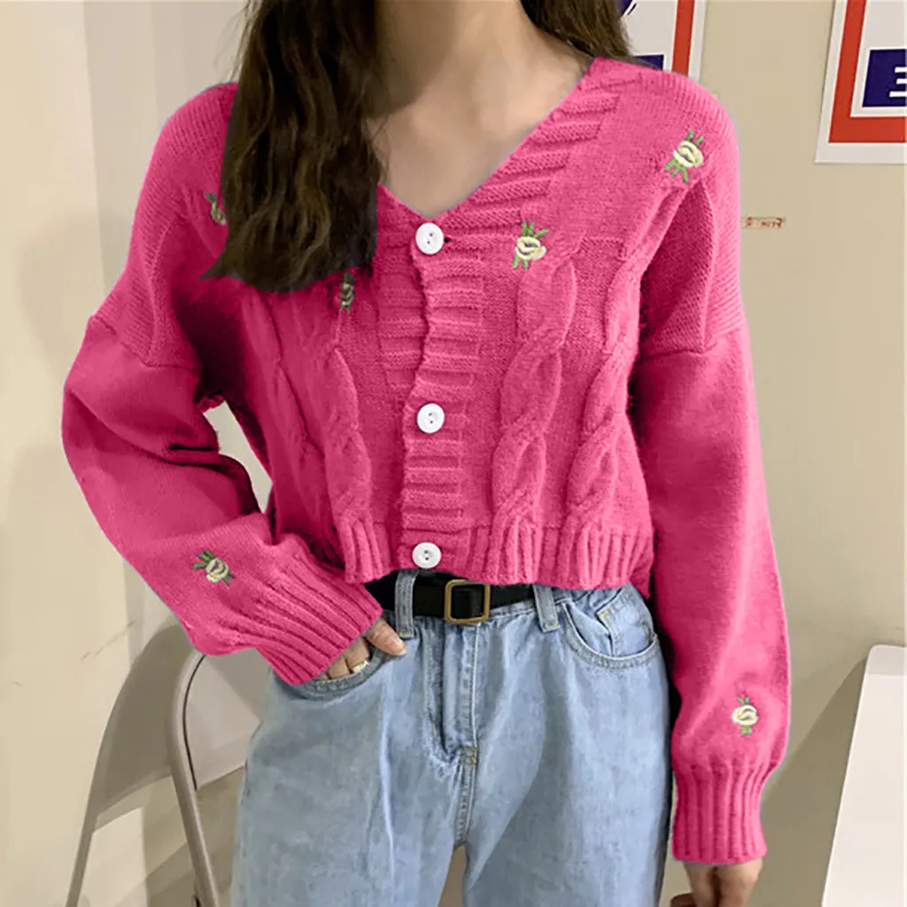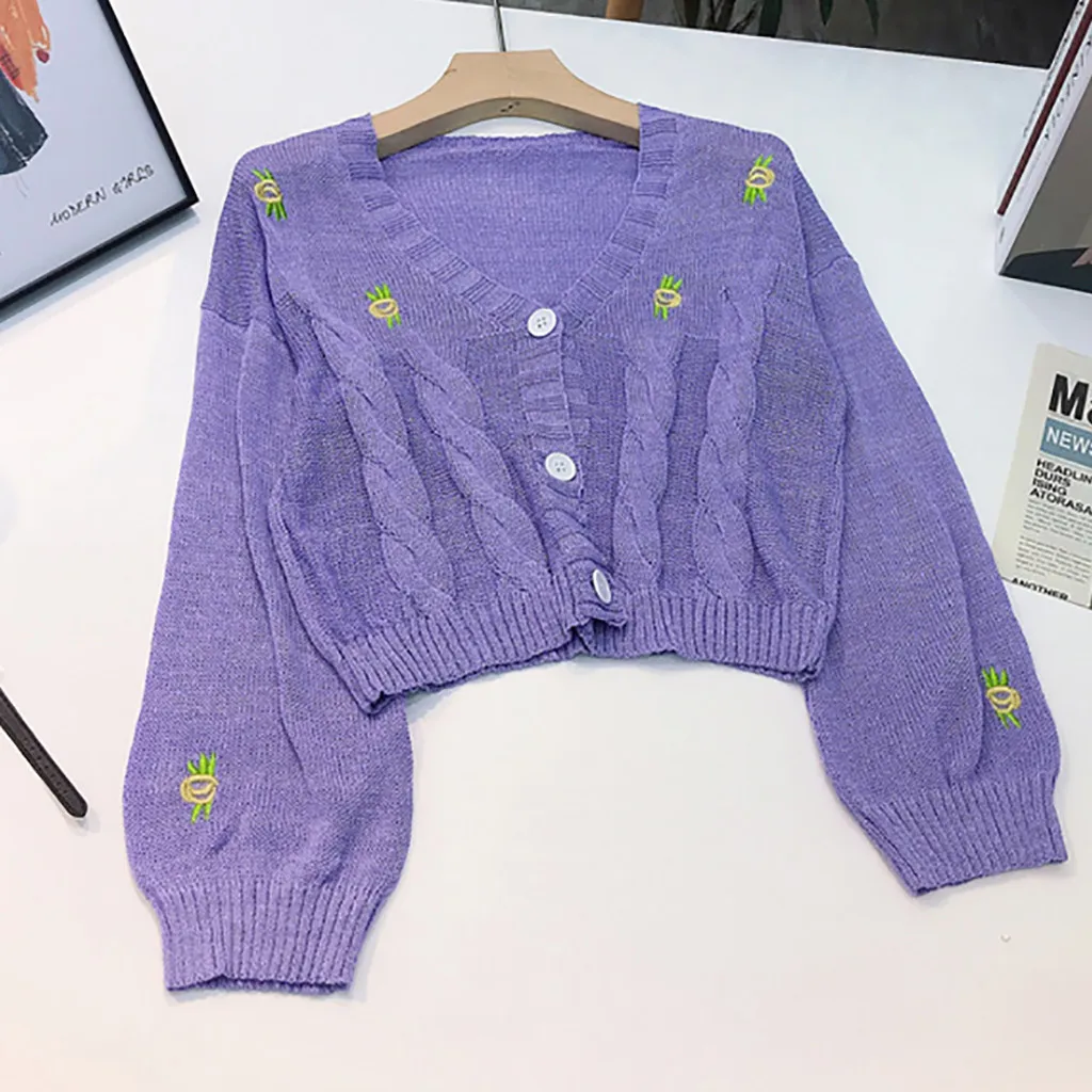 Женский свитер с вышивкой, осенне-зимний вязаный Свободный Повседневный Топ