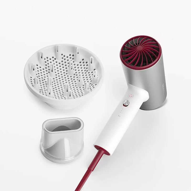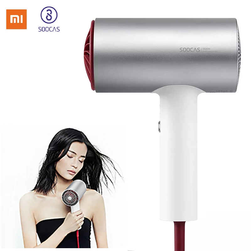 Soocas фен включает японскую эстетическую концепцию. Это просто,Белый, красный светильник с низким серым серебром имеет современный вид.