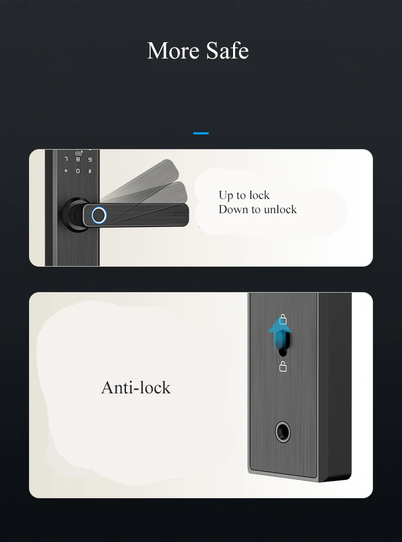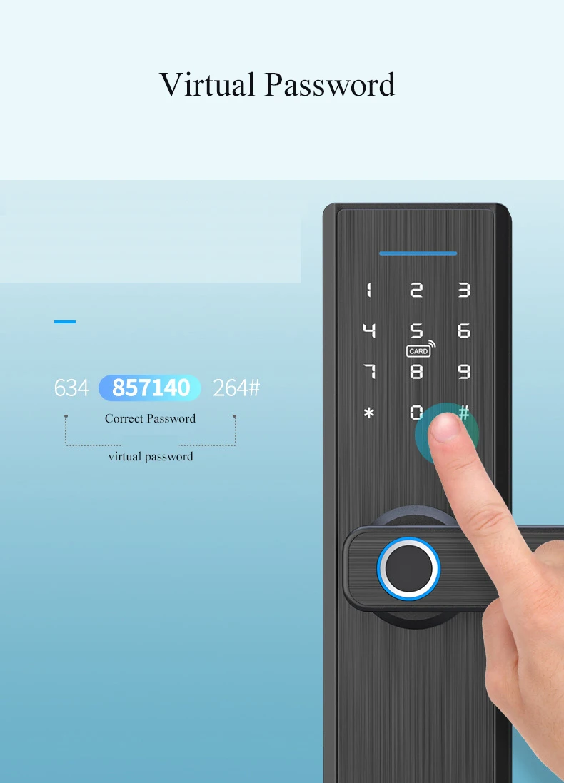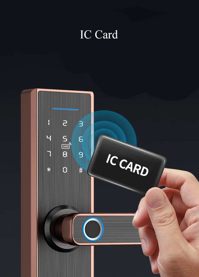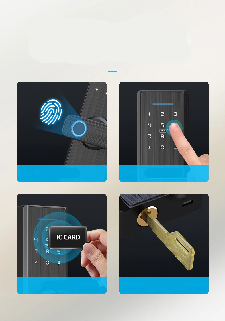 Режим разблокировки: отпечаток пальца/IC карта/пароль/механический ключ/приложение TTLock