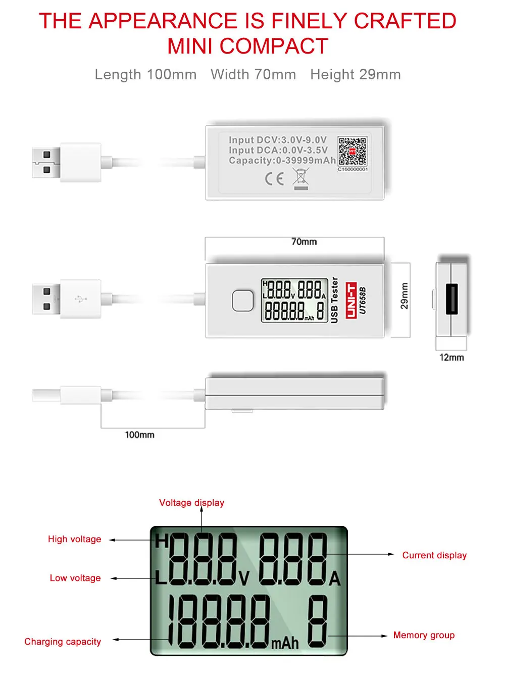 USB тестер цифровой вольтметр постоянного тока амперметр измеритель напряжения и