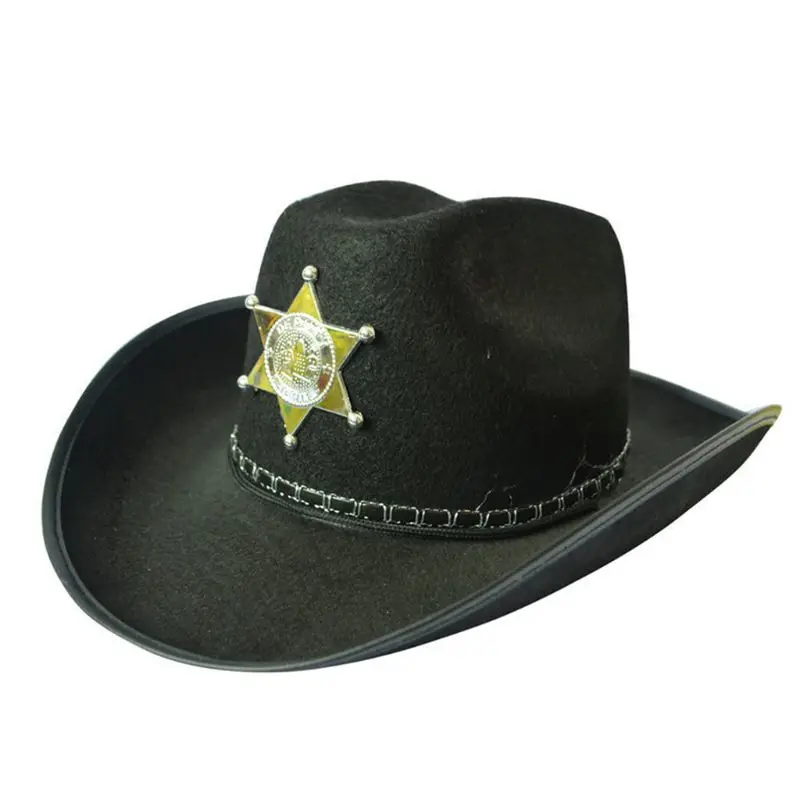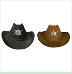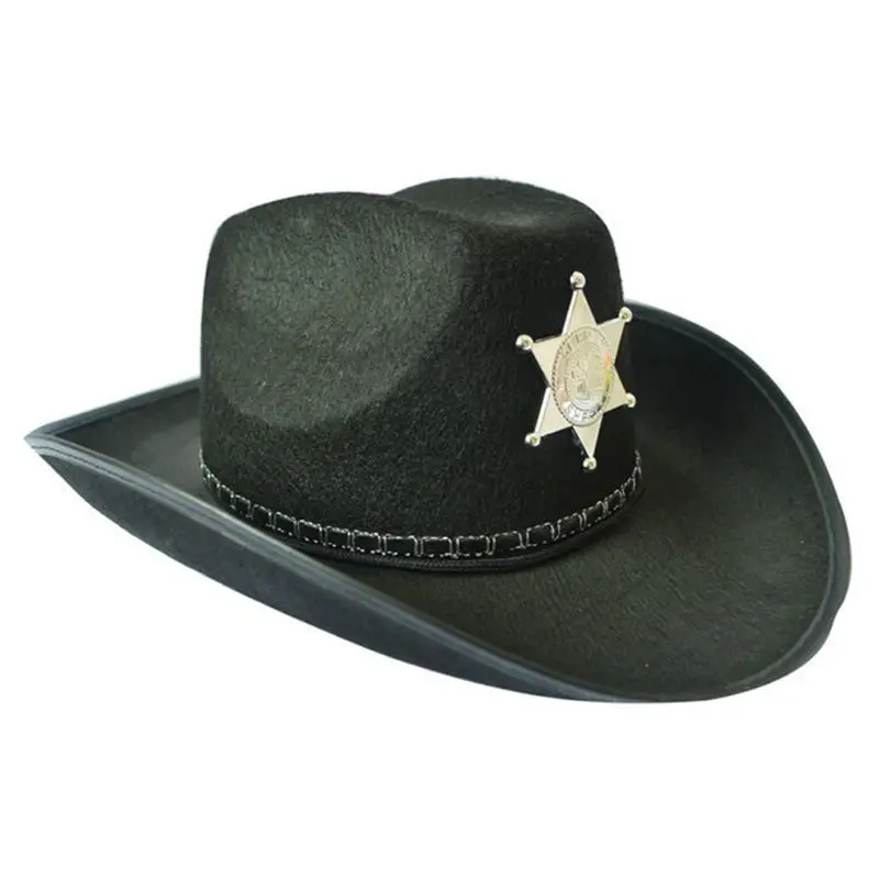 Завершите свой наряд wild west с помощью коричневой ковбойской шляпы со звездой. Коричневый войлочный материал хорошо держит жесткую форму.