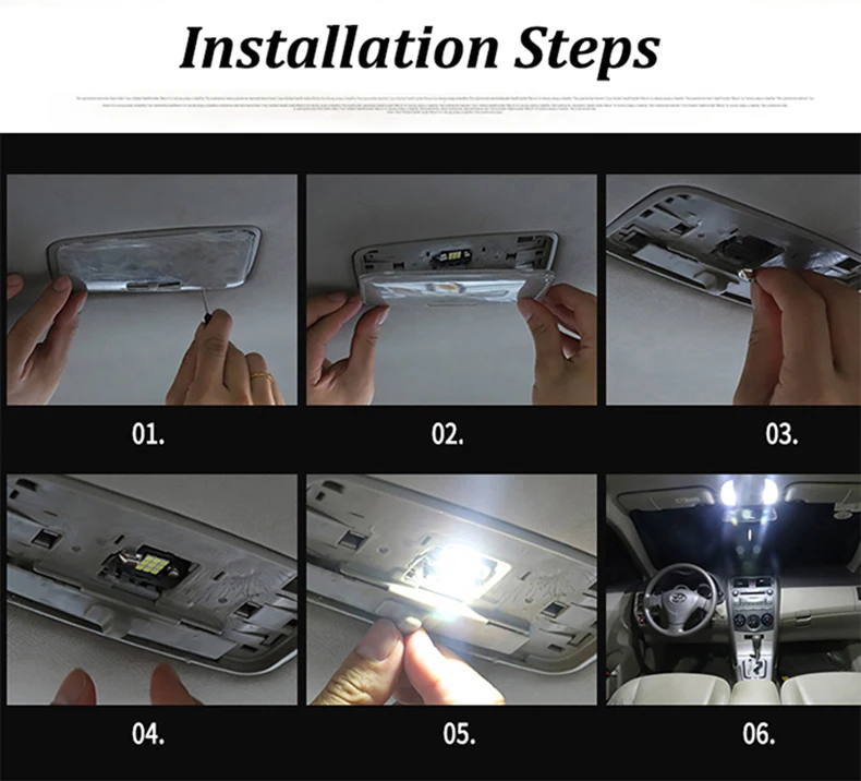 ▶ Please turn off the light first before installation and be careful while removing the stock bulb, it may be very hot. ▶ Simply remove your old bulb and install the new LED bulb in it's place. If the light doesn't immediately turn on flip it 180 degrees. ▶ Please kindly move the metal pin clips closer so that they can mount the festoon tighter in case the bulb is slightly loose in socket