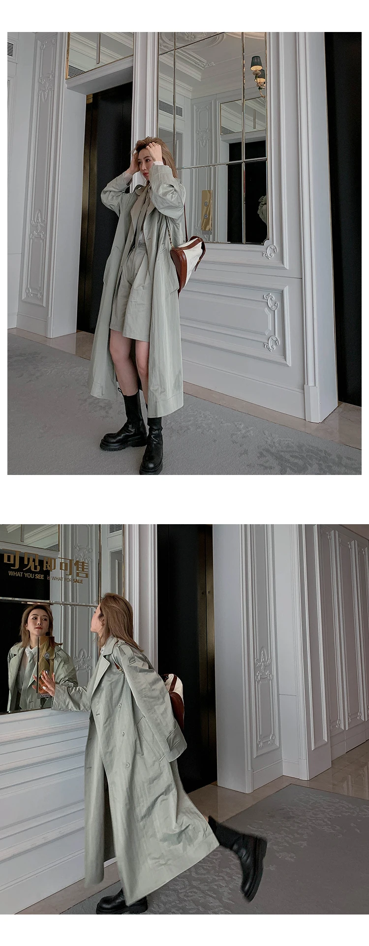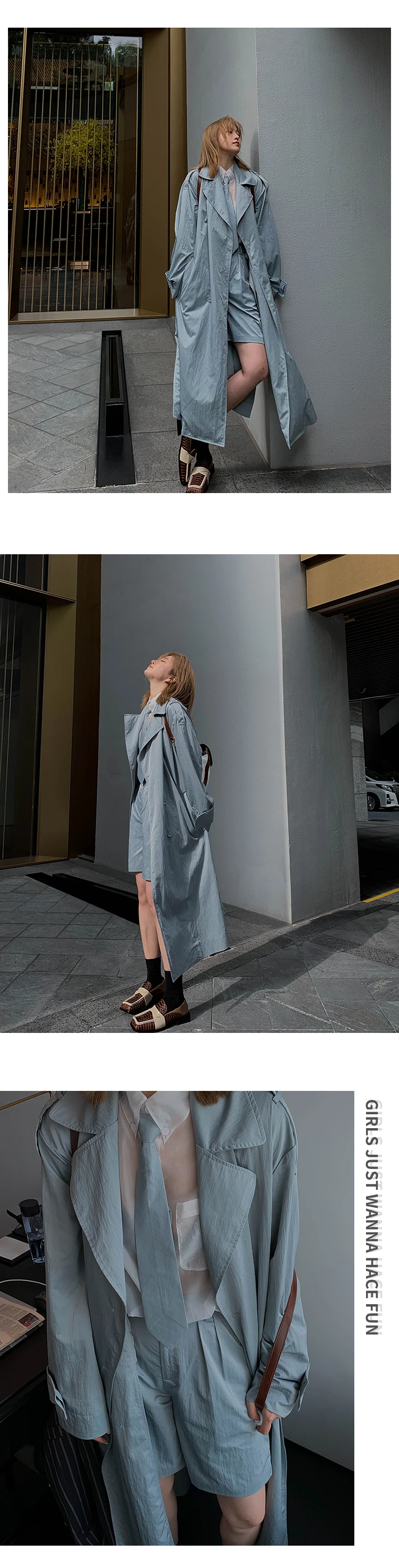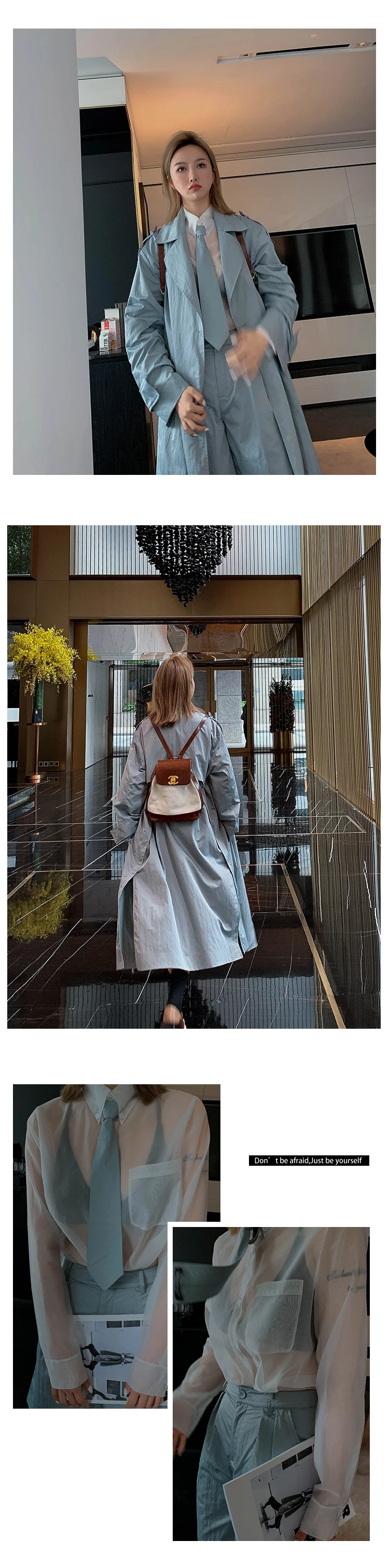Женский осенний костюм-ветровка средней длины Свободный Длинный Тренч-шорты с