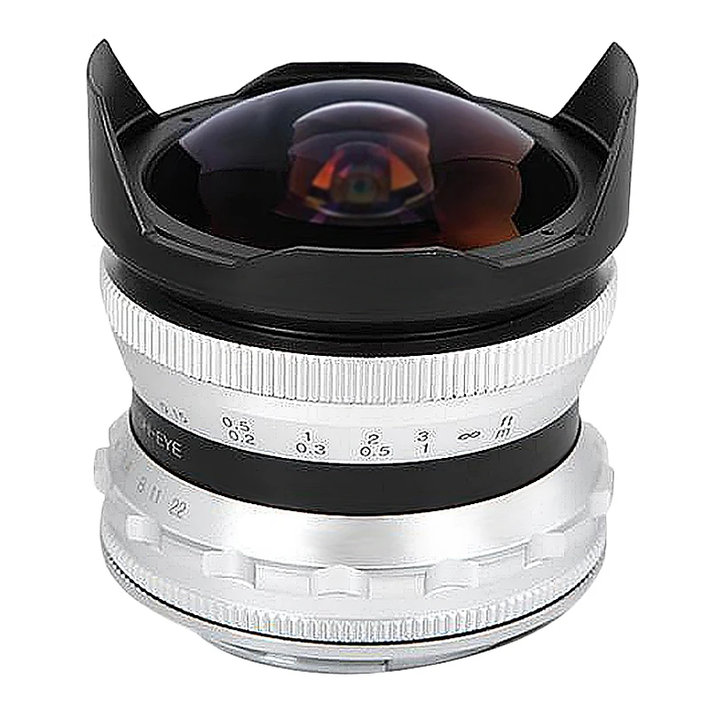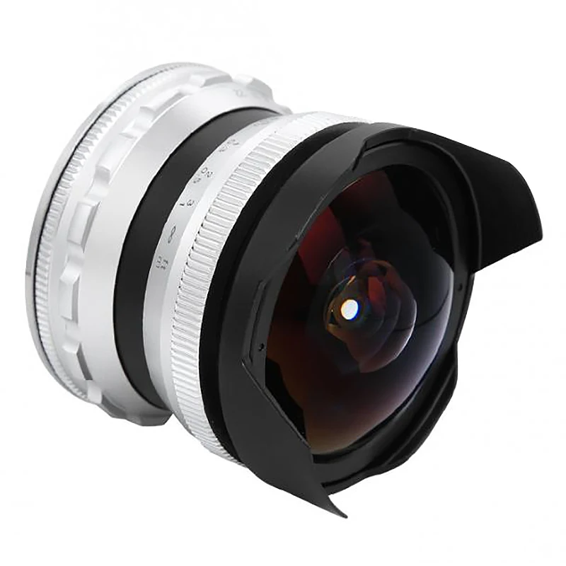 Объектив рыбий глаз с фиксированным фокусом 7,5 мм F2.8 подходит для объектива OLYMPUS/Panasonic M4/3 Mount Micro-Camera Silver