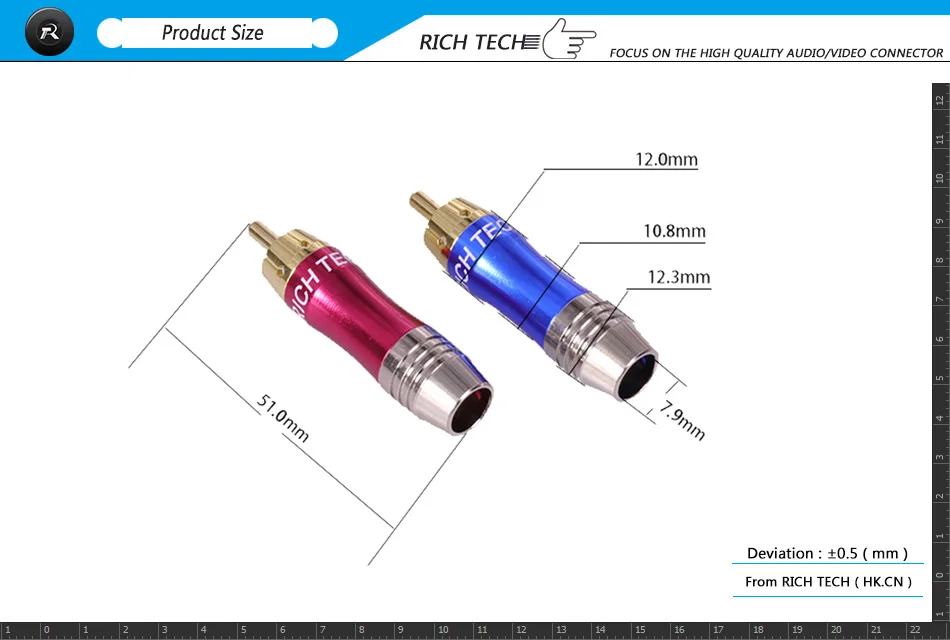 10 шт./лот, высокое качество, позолоченный RCA разъем, штекер RCA, адаптер, аудио/видео кабель, разъем, 5 пар, красный + синий цвета