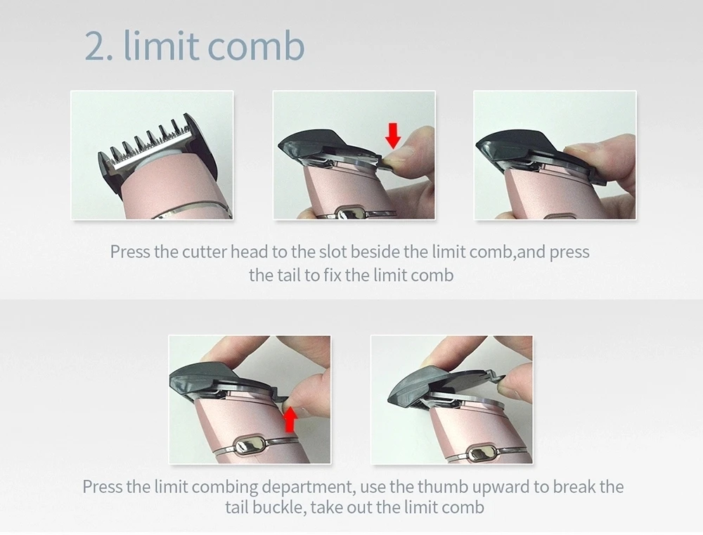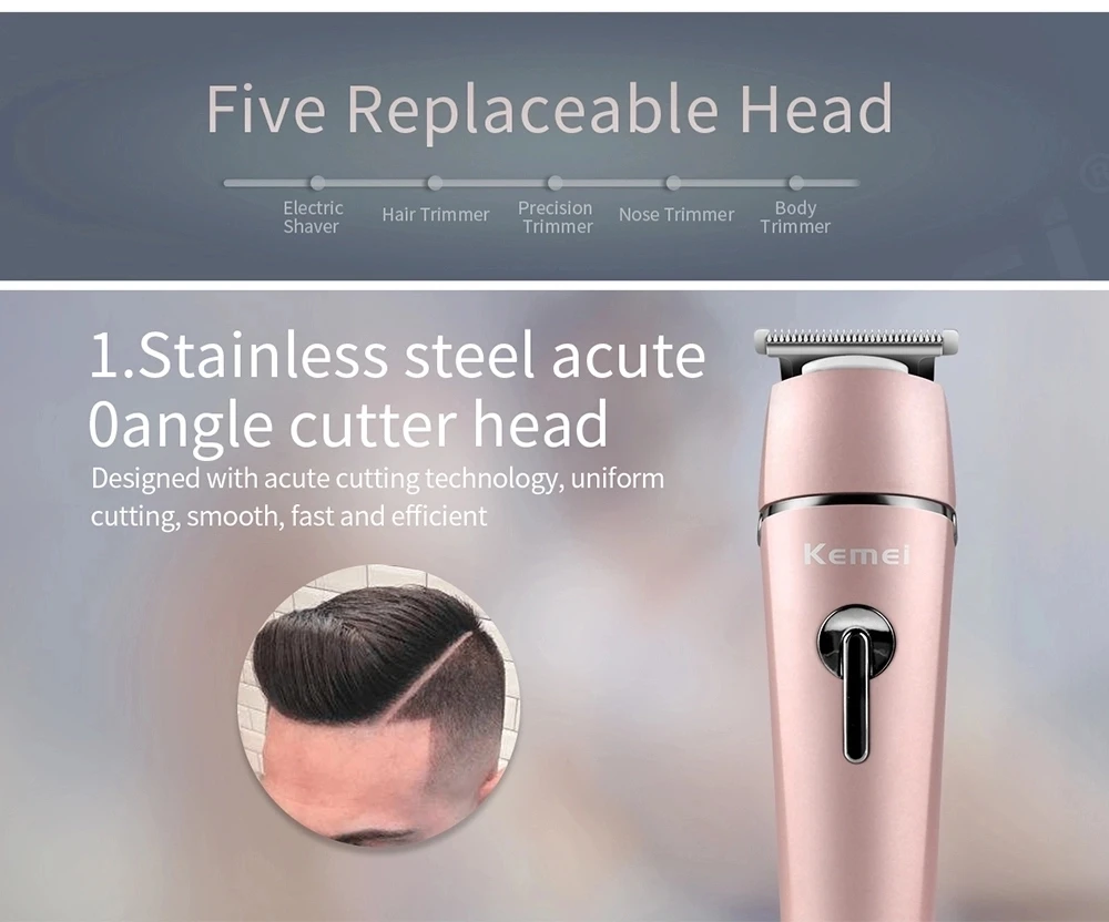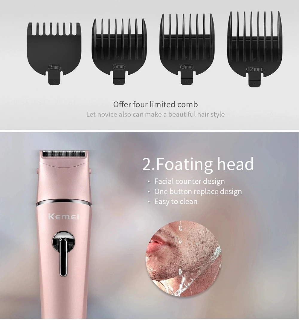 1. Усовершенствованная система резки 2. Обтекаемая модель и эргономичный дизайн 3. Используется для любой длины с предельной расческой 4. Бесшумный дизайн/шум ниже, чем аналогичные продукты 5. Используется без проводов, удобно в эксплуатации 6. Когда он заряжается, индикатор покажет светильник