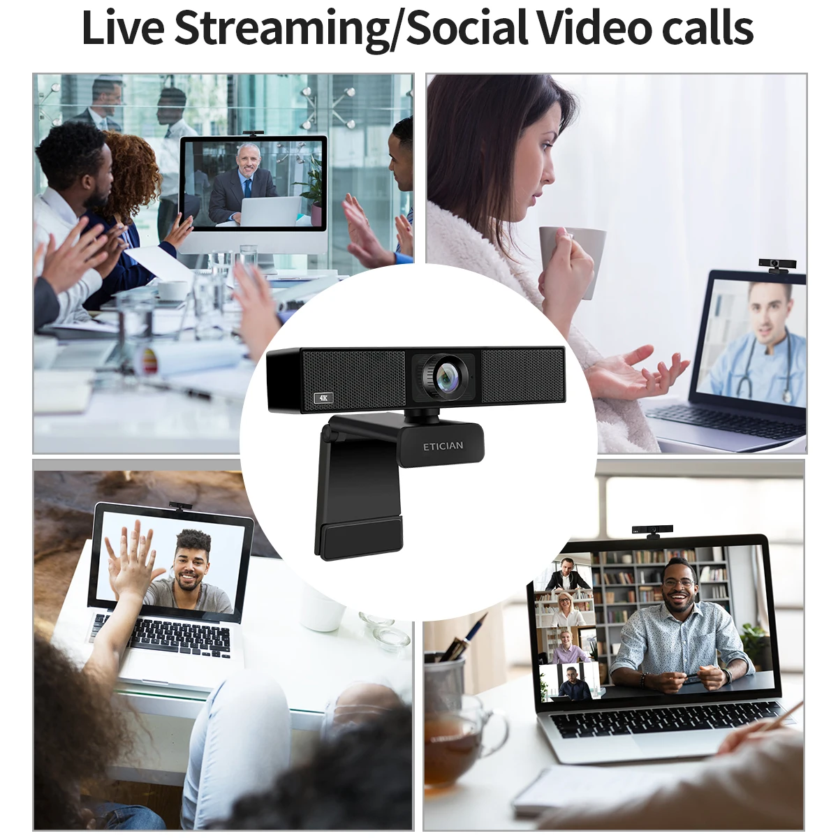 Технические характеристики изделия: Фирменное наименование: ETICIAN. Цвет изделия: черный. Чип DSP: без драйвера Датчик изображения: CMOS Линзы: импортные пятислойные стеклянные линзы Высокое разрешение: 8 миллионов пикселей 116 градусов ультра широкоугольный Максимальное динамическое разрешение: 3840 × 2160. Частота кадров: 25 кадров в секунду Длина usb-кабеля: 180 см В комплект входит: 1*4K веб-камера (ручная фокусировка) 1 * Руководство пользователя на английском языке Вопрос-ответ о веб-камере 4k: 1 Вопрос: Как я могу испытать эффективность 4k на ноутбуке, настольном компьютере и android tv? A: если вы хотите испытать 4k эффективность на ноутбуке и настольном компьютере, Ваш монитор должен быть 4k, 4k видеокарта в хосты. Если вы хотите испытать эффективность 4k на android tv, Ваш монитор должен быть 4k и нужен высококачественный кабель 4k HDMI. Если у вас нет основных устройств выше, вы не можете испытать эффективность 4k. Вы просто получите 1080p эффективность. 2 В: как проверить FPS? О: Поскольку некоторые покупатели тестировали веб-камеру на некоторых интернет-сайтах, возможно, их хосты являются собранными. Формально, я советую вам использовать профессиональный VideoCap для тестирования. Данные такие точные. 3: В: почему микрофон веб-камеры не работает? О: возможно, последний микрофон по умолчанию все еще на вашем рабочем столе. Удалите его на управляемые устройства. Затем подключите новую веб-камеру 4k для распознавания нового микрофона. Другая причина в том, что ваш микрофон windows имеет проблемы, пожалуйста, решите их. 4: есть ли в розничной коробке штатив? О: Нет, в нем есть веб-камера и руководство на английском языке. И веб-камера имеет отверстие для использования штатива. 5 В: подходит ли веб-камера для потоковой передачи? О: Да, есть. Это веб-камера 4k с широкоугольным углом 116 градусов.