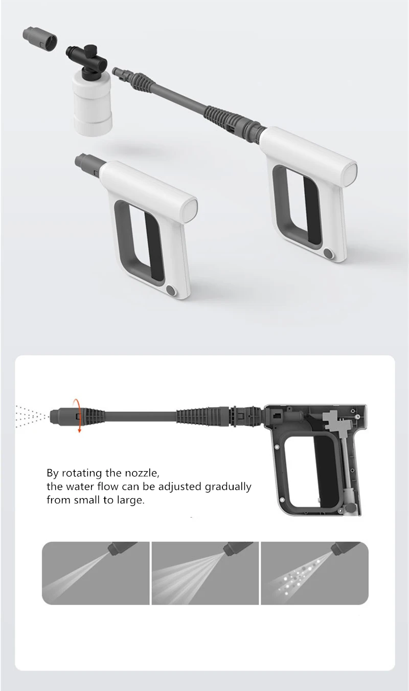 В соответствии с различными сценариями использования, давление воды может быть изменено путем вращения выхода воды, а выход воды может быть отрегулирован вращением сопла на 360 °