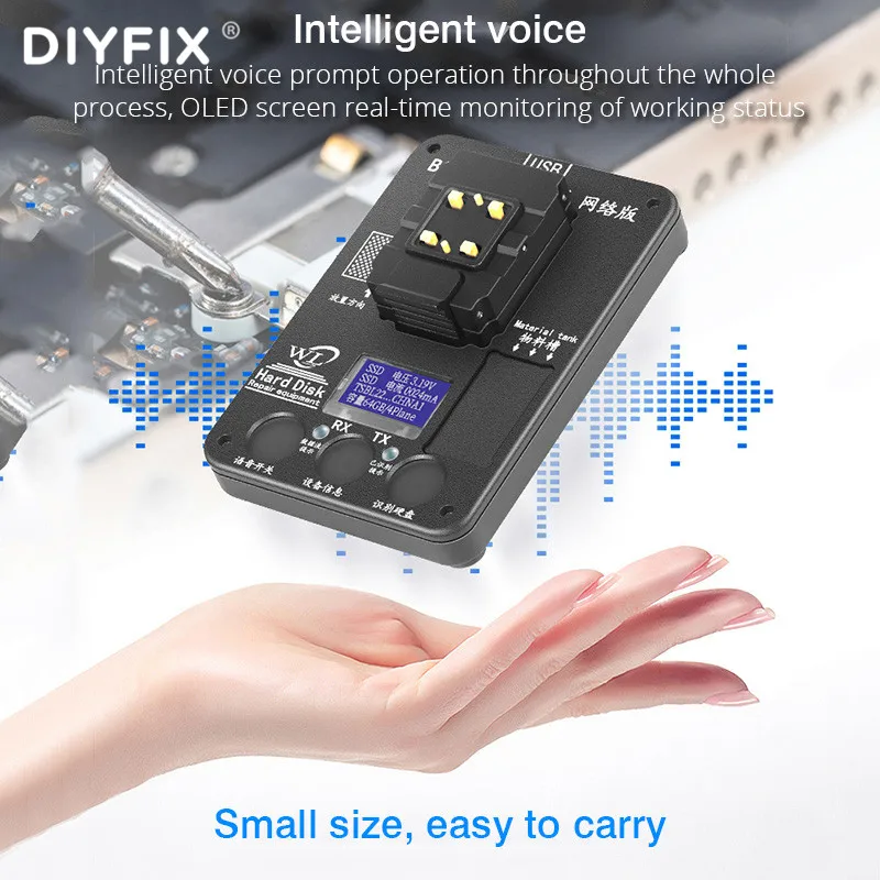 Supports deep analysis of the bottom layer of the hard disk and full erasure Support 9-11Pro max-SE2 BGA110 pin hard disk dara read/write/backup,untie Wifi Support high compatibilty cross-model hard drive interchange ,hard drive unlock,deep drive unlock.deep repair hard drive Repair BGA110 hard disk data error/fix flash error caused by model mismatch etc