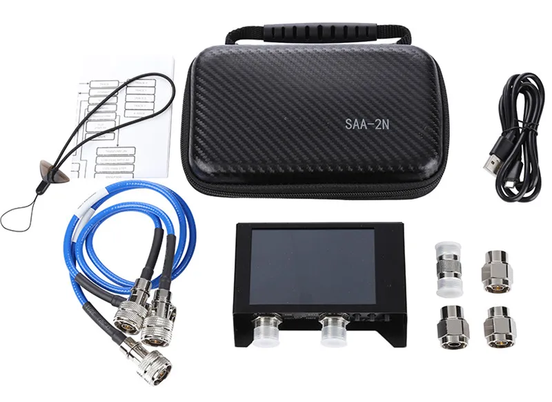 SAA-2N хост-1 шт. Micro USB кабель для передачи данных x1 50 см N-type папа-папа RG142-PUR RF кабель x2 N-type male calibration kit - OPEN x1 N-type male калибровочный набор-короткий x1 N-type male калибровочный набор-нагрузка x1 Разъем N-type female-female x1 Весла и ремешок для сенсорного экрана x1 EVA сумка для хранения x1