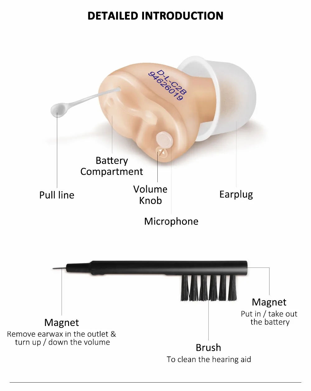 ②. Ушной купол или звуковая трубка заблокированы ушным воском, пожалуйста, используйте чистящую щетку для очистки ушного купола и звуковой трубки.