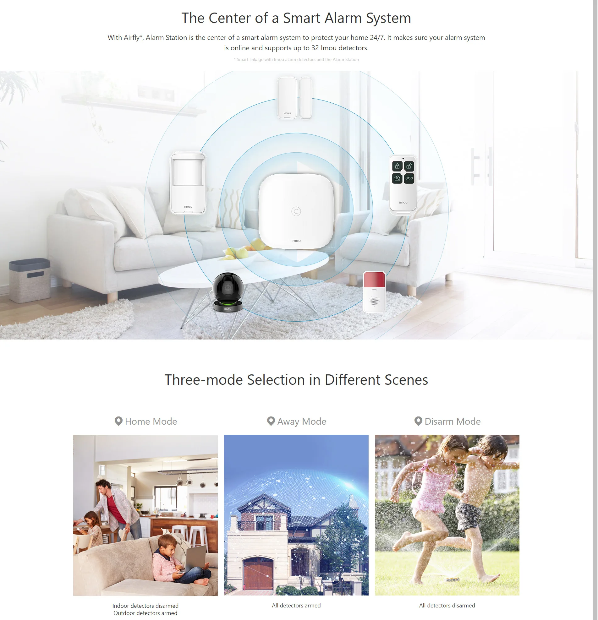 С Airfly * станция сигнализации является центром умной сигнализации для защиты вашего дома 24/7. Она гарантирует, что ваша система сигнализации находится в сети и поддерживает до 32 детекторов Imou.