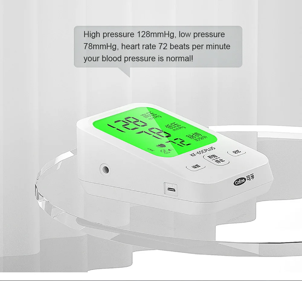 Cofoe USB зарядка автоматическая верхняя рука ЖК-цифровой монитор артериального давления Сфигмоманометр частота сердечных сокращений тонометр + линия передачи данных