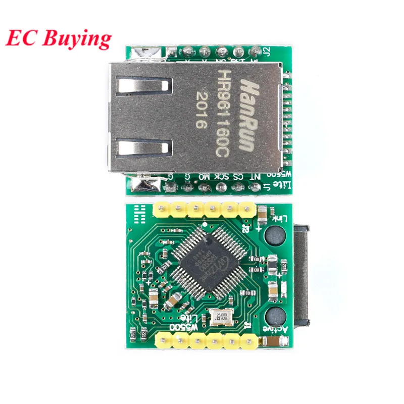 USR-ES1 встроен с чипом W5500 Wiznet и использует аппаратные схемы логических ворот для реализации транспортного слоя и сетевого слоя стека протокола TCP/IP (например: TCP, UDP, ICMP, iP4, ARP, IGMP, PPPoE и другие протоколы) и интегрирует слой канала передачи данных, физический слой и 32K байтов микросхемы Оперативная памятьКэш для отправки и получения данных. Сделать главный чип управления хост-компьютером нужно только выполнить обработку TCP/IP информации о слоях приложения. Это значительно снижает нагрузку на хост-компьютер для репликации данных, обработки протоколов и прерывания обработки, а также улучшает использование и надежность системы.Во время работы пользователи могут использовать W5500 как периферийную ОЗУ MCU, что очень просто. Внешний интерфейс W5500 является общим высокоскоростным SPI 80 МГц, который может быть выбран для различных платформ для расширения высокоскоростных Ethernet-решений. Светодиодный режим автоматического согласования показывает, что интерфейс SPI быстрый и стабильный.Размер и контакты совместимы с официальным модулем Wiznet WIZ820ioОсобенности:1. Высокоскоростной SPI интерфейс 80 МГц2. Встроенный аппаратный TCPIP протокол стека, пользователям почти не нужно осваивать сложные Сетевые протоколы3. Поддержка до 8 разъемов4. Поддержка TCP, UDP, ICMP, iP4, ARP, IGMP.PPPoE протокол5. Интегрированный слой передачи данных и физический слой6. Поддержка пробуждения после отключения питания7. Поддержка высокоскоростного последовательного периферийного интерфейса 0 (Режим SPI 0 ~ 3)8. Внутренний 32K байт передачи и получения буфера9. Встроенный 10BaseT/1 00BaseTX Ethernet физический слой (PHY)10. Поддержка автоматического согласования (10/100 на основе полной двойной земли/половина двойной земли) 11. Не поддерживает фрагментацию IP12. 3,3 V рабочее напряжение, 1/0 сигнала порт 5V Выдерживаемое Напряжение13. Светодиодный дисплей состояния (полный дуплекс/полудуплекс, сетевое соединение, скорость сети, статус активности14. Ультра-маленькая контактная посылка, удобная для встроенных приложений15. Предоставление C процедур примененияПараметры продукта:1. Источника питания режим: 3,3 V внешнего источника питания, в настоящее время должно быть больше, чем 200mA2. Управление форма интерфейса: 3,3 V TTL уровне _ SPI интерфейс, 2 * однорядные pin-код3. Размер печатной платы (мм): 23*25 мм4. Механические Размеры (длина * ширина * высота): 28,5*23*24 ммОписание штифта:GND: Заземление, отрицательная мощностьVIN3.3: 3,3 V источника питания положительныйPWDN: Pin используется для режима отключения питанияВысокий уровень: режим отключения питанияНизкий уровень: нормальный режим включенNREST: Этот штырь является активным низким, используется для сброса и повторной инициализации W5500MISO: SPI master вход и slave выходMOSI: SPI главный выход И slave входSCLK: SPI штырь для часовNSS: чип SPI выберите pin, активный lowNINT: прерыватель, активный низкийМеры предосторожности:Этот модуль не является прозрачным модулем передачи SPI-to-Ethernet, он должен использоваться внешним микроконтроллером, и пользователю необходимо понять Использование чипа W5500, И предоставьте код образца STM32.