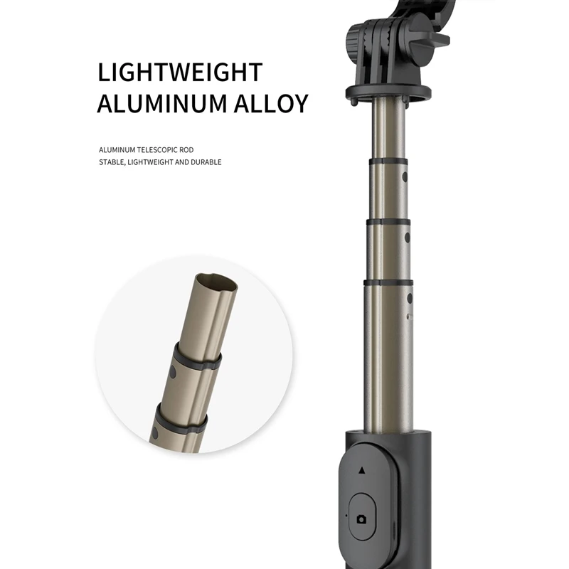 Тяговый стержень из алюминиевого сплава, легче, прочнее и стабильнее; Вращение на 360 градусов поддерживает вертикальные и горизонтальные удары; Привнесите свой собственный штатив и Bluetooth Автоспуск; Совместимость с Android и iOS.