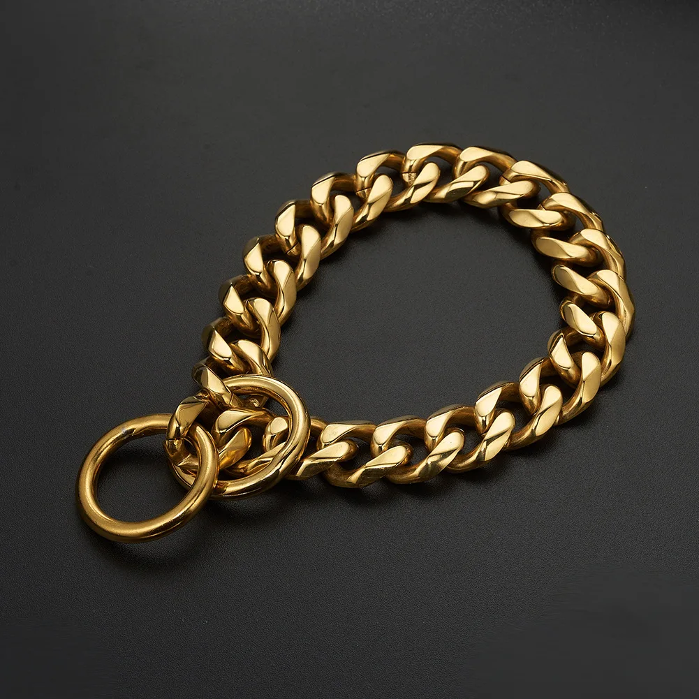 Золотой ошейник для собак кубинское соединение ошейник из нержавеющей стали для больших собак питбул ожерелье с ротвейлером 19 мм Ширина 16 ''-28'' обхват шеи 10A