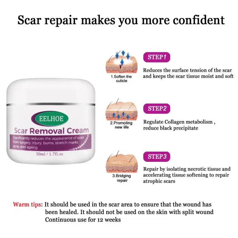 Улучшенная Формула для всех типов кожи для удаления шрамов, старых и новых. Он очень подходит для удаления рубцов, порезов, следов беременности, следов от акне, повреждений кожи, ожогов, штаммов, покраснения и отека кожи на лице, ногах, руках и т. д.