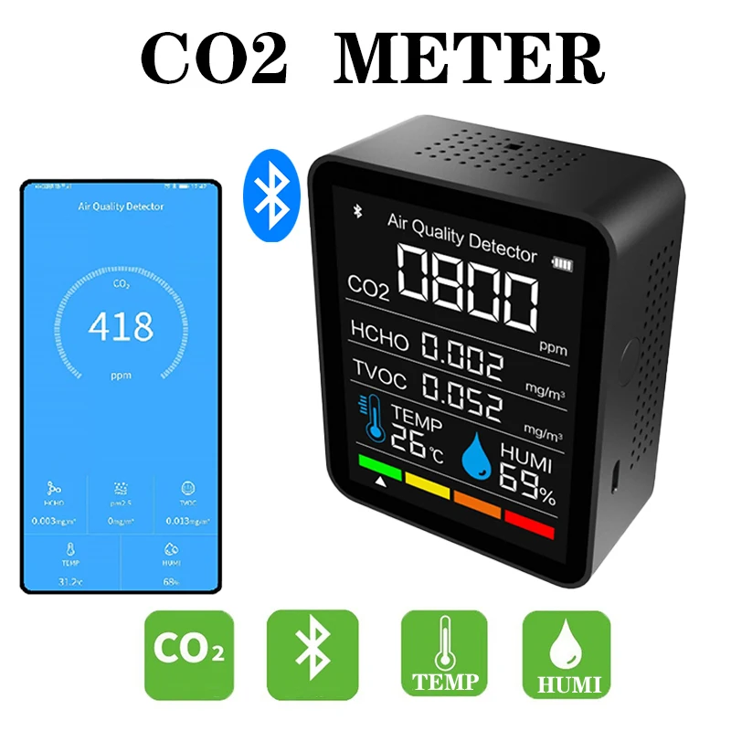 1, 5 в 1, поддержка температуры, влажности, CO2, HCHO, TOVC обнаружения.