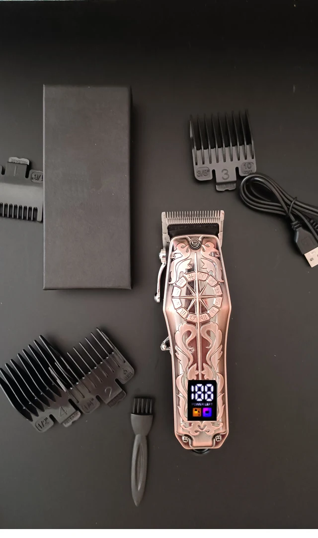 1). Портативная машинка для стрижки волос SThe Sauron серии Властелин колец с ЖК-дисплеем: расстояние между срезами 0 мм, подходит для стрижки, бритья, волос на теле и других сценариев применения.