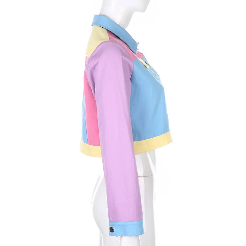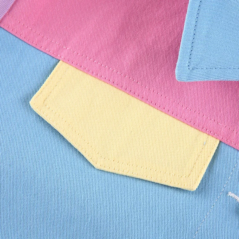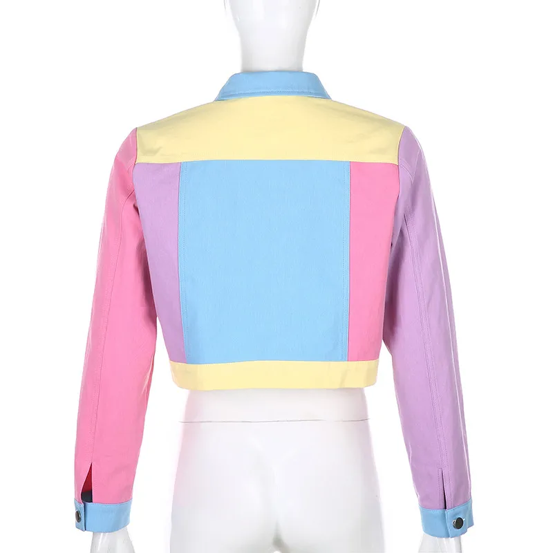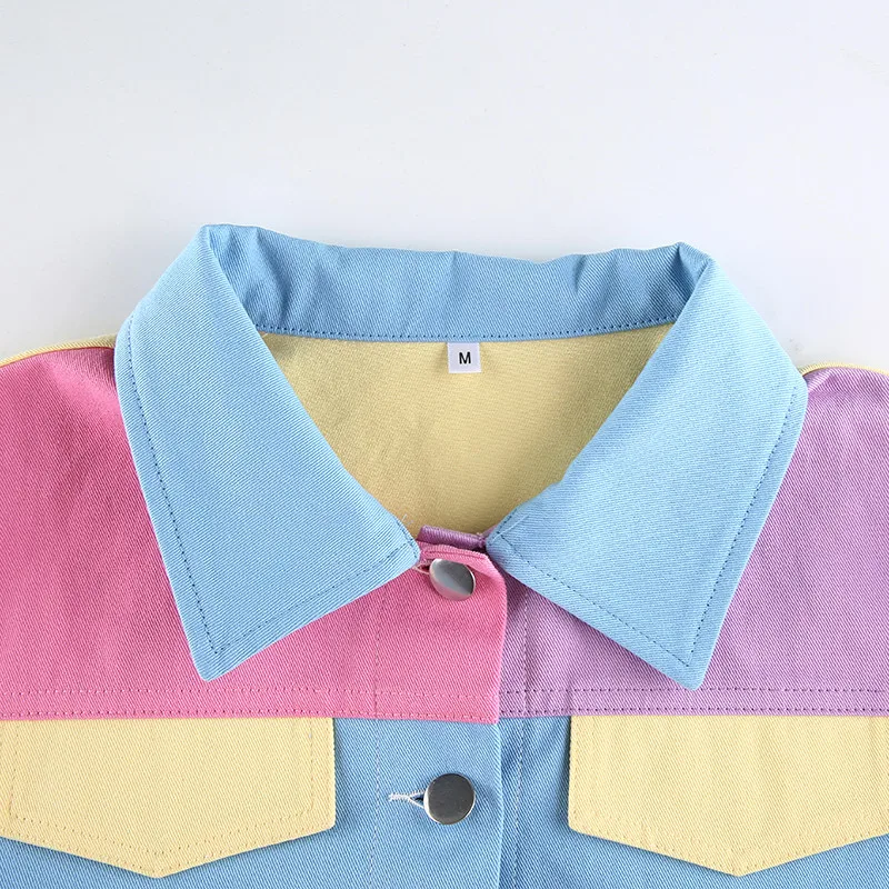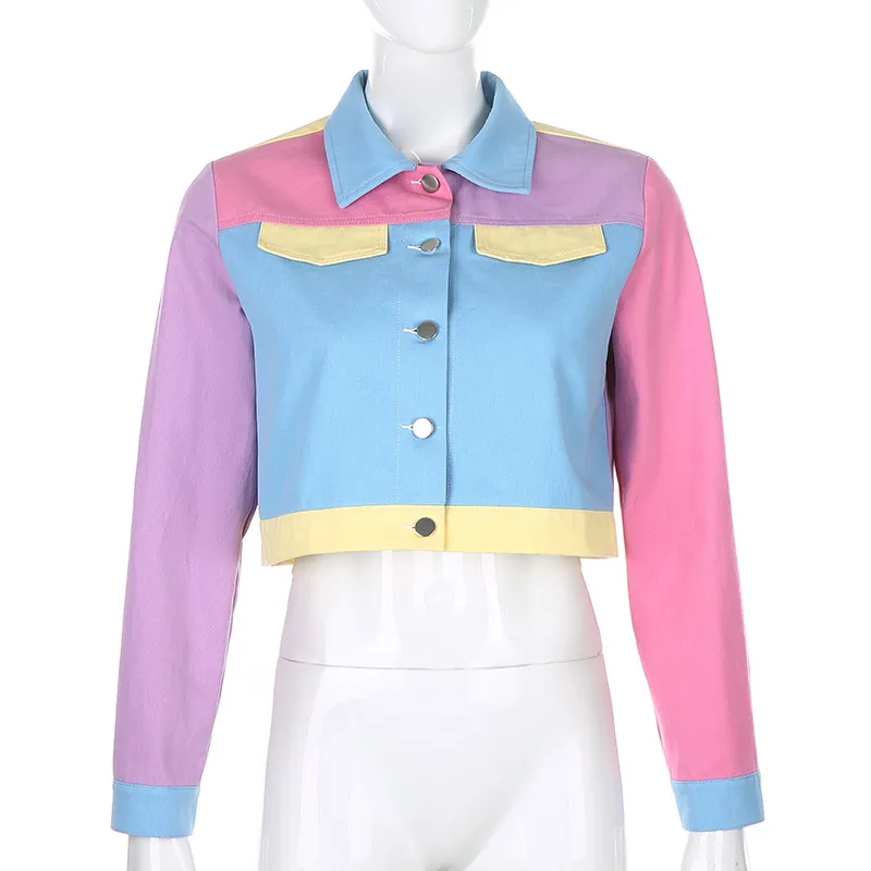 Демисезонный винтажные джинсы куртка Для женщин Harajuku с большими лацканами
